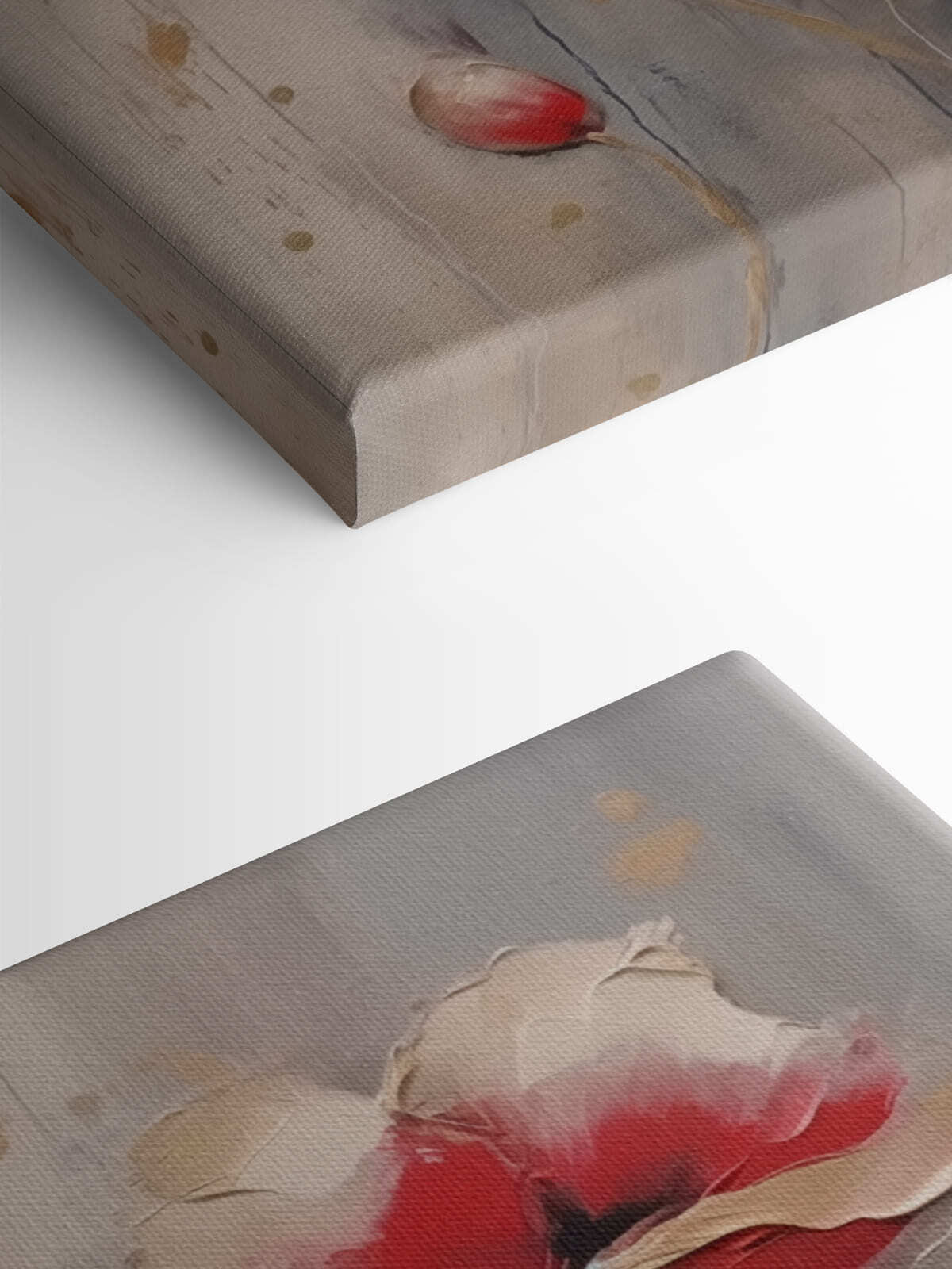 Aduceți un strop de natură în spațiul dvs. cu această imprimare uimitoare pe pânză cu flori pe un fundal gri de vis. Roșul îndrăzneț și cremele moi ale florilor abia așteaptă să înveselească acel perete care se simte un pic prea “meh”. Imaginează-ți că te relaxezi cu o carte bună, aruncând o privire către aceste flori superbe – este ca și cum ți-ar da o mică încurajare. Sunt perfecte pentru sufragerie, dormitor sau chiar pentru holul acela excentric. S-ar putea chiar să vă facă să zâmbiți de fiecare dată când treceți pe lângă ele. Pentru că cine nu are nevoie de un pic mai multă putere a florilor în viața sa?