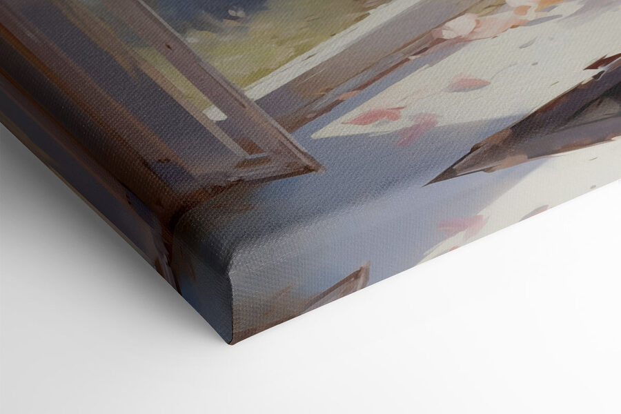 Aduceți o gură de aer proaspăt în orice cameră cu această încântătoare imprimare pe pânză, “Vază de flori în fața unei ferestre”. Imaginați-vă culorile moi ale florilor înflorite dansând în lumina soarelui, creând o atmosferă confortabilă și primitoare. Este ca și cum ai avea o bucățică de natură chiar în interior – fără grija alergiei la polen! Perfect pentru a înveseli o cameră de zi sau pentru a adăuga o notă de farmec unui dormitor. Fiecare privire ar putea evoca o după-amiază însorită, poate chiar inspira o ceașcă de ceai. Cine nu și-ar dori să se trezească la așa ceva? Este arta care șoptește relaxare și bucurie, făcând ca fiecare zi să fie un pic mai specială.
