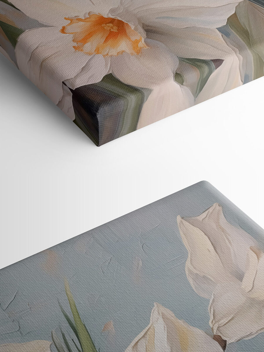 Înveseliți orice cameră cu această imprimare uimitoare pe pânză cu flori albe, aducând o atmosferă proaspătă și naturală în spațiul dvs. Imaginați-vă-o agățată într-un colț confortabil, cu lumina soarelui pătrunzând prin ea, făcând petalele aproape să strălucească. Este ca o gură de aer primăvăratic, invitând la căldură și un strop de eleganță. Imaginați-vă că prietenii trec pe aici, o admiră și comentează cum face ca întregul loc să pară mai ușor și mai primitor. Cu tonurile sale moi și detaliile delicate, această piesă adaugă atingerea potrivită de farmec – perfectă pentru cei care adoră un pic de natură în interior. Transformați orice perete într-un refugiu liniștit. Cine nu și-ar dori asta?