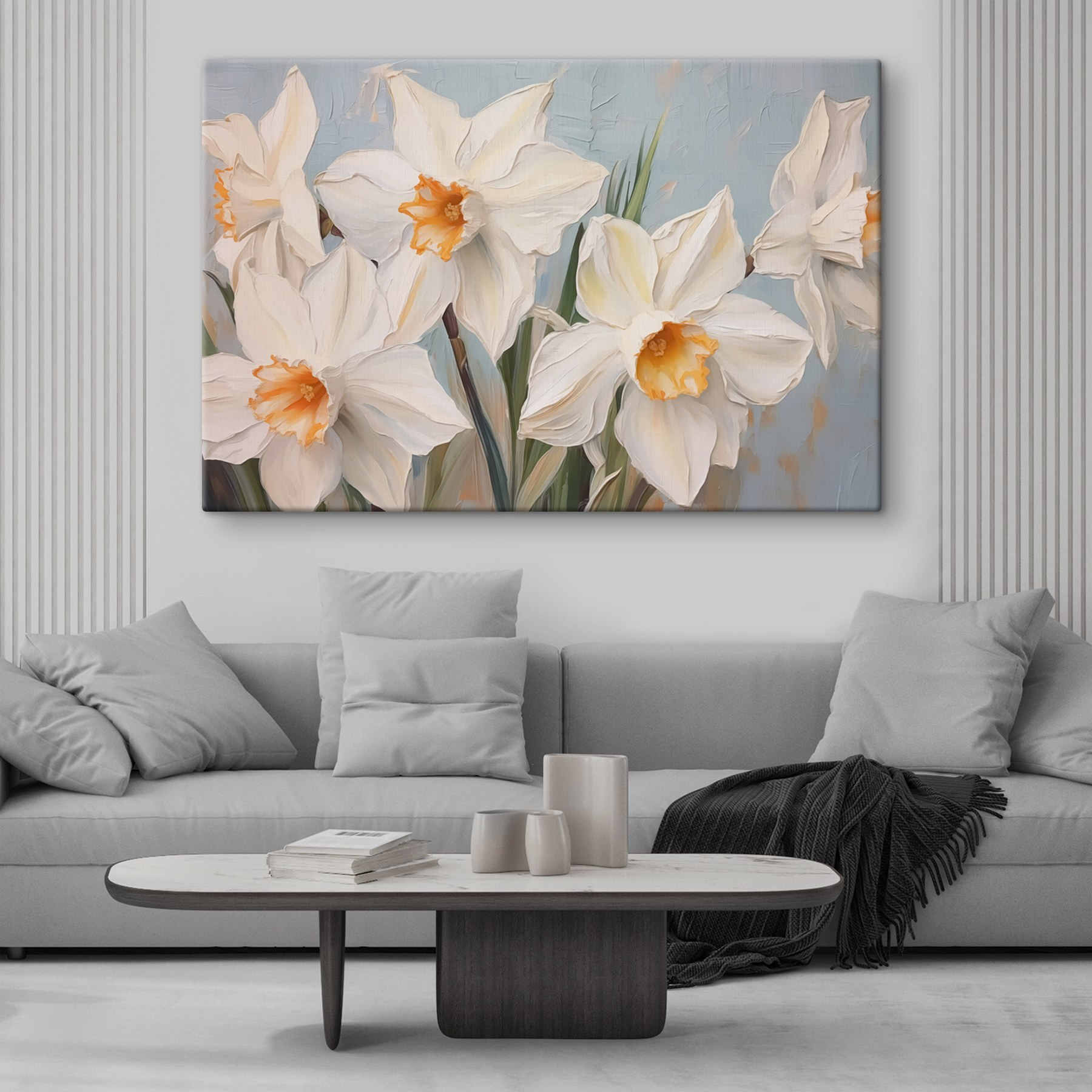 Înveseliți orice cameră cu această imprimare uimitoare pe pânză cu flori albe, aducând o atmosferă proaspătă și naturală în spațiul dvs. Imaginați-vă-o agățată într-un colț confortabil, cu lumina soarelui pătrunzând prin ea, făcând petalele aproape să strălucească. Este ca o gură de aer primăvăratic, invitând la căldură și un strop de eleganță. Imaginați-vă că prietenii trec pe aici, o admiră și comentează cum face ca întregul loc să pară mai ușor și mai primitor. Cu tonurile sale moi și detaliile delicate, această piesă adaugă atingerea potrivită de farmec – perfectă pentru cei care adoră un pic de natură în interior. Transformați orice perete într-un refugiu liniștit. Cine nu și-ar dori asta?