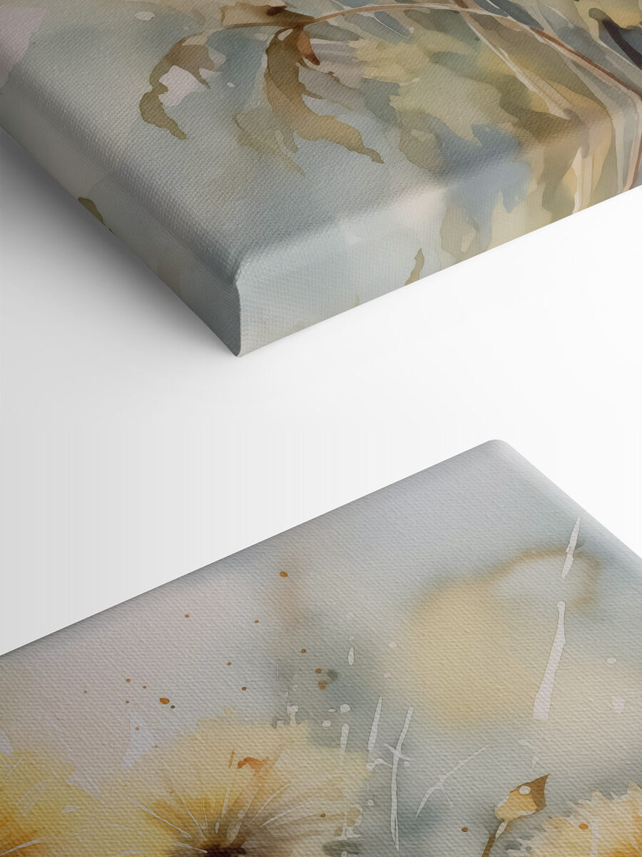 Transformați orice spațiu într-o evadare senină cu această acuarelă fermecătoare imprimată pe pânză, cu flori delicate legănate de briză. Imaginați-vă acest lucru: pășind într-o cameră în care o explozie de galbeni moi și verde blând invită la un sentiment de calm. Este ca și cum ai aduce o pajiște însorită în interior. Amestecul subtil de culori adaugă o notă de rafinament, dar este totuși cald și primitor – exact ca o pătură confortabilă într-o seară răcoroasă. Fie că este agățată într-un living sau luminează un birou de acasă, această piesă stârnește bucurie și poate chiar un zâmbet sau două. Cine nu s-ar simți un pic mai fericit înconjurat de flori? Oferiți pereților dvs. puțină dragoste cu această artă superbă!