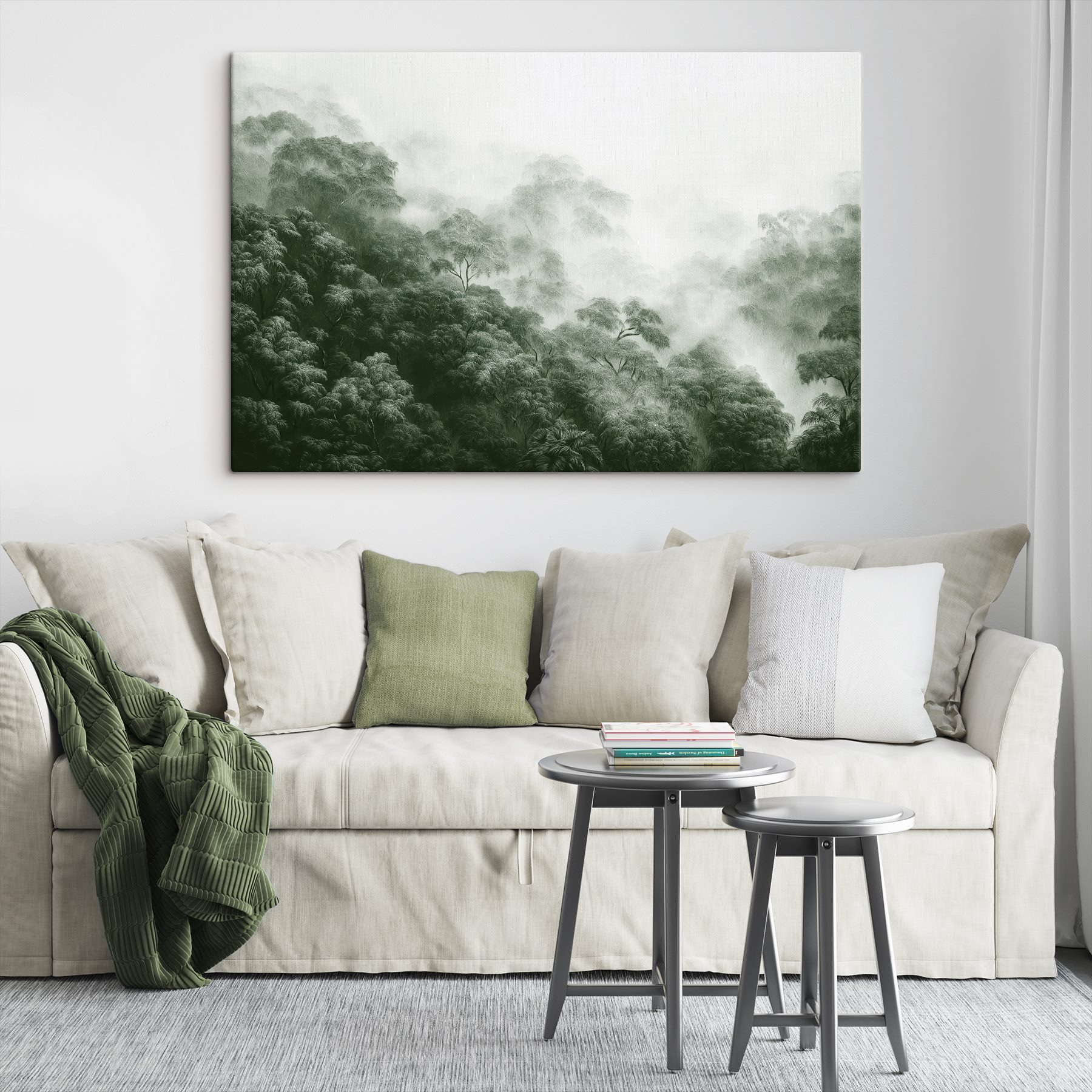 Intrați într-o lume senină de fiecare dată când aruncați o privire la acest print pe pânză “Foggy Forest with Trees”. Este ca și cum ai aduce o bucățică de natură chiar în sufrageria ta, fără gândaci și pantofi murdari de noroi! Ceața blândă învăluită în verdele luxuriant evocă un sentiment de calm – perfect pentru acele momente în care doriți doar să scăpați de haosul cotidian. Imaginează-ți că te relaxezi cu o carte bună, iar nuanțele moi ale imprimeului fac ca spațiul să fie confortabil și în același timp răcoritor. Prietenii ar putea chiar să comenteze despre ochiul tău ascuțit pentru artă. Cine ar fi crezut că o pădure poate fi atât de primitoare? Adăugați o notă de liniște pe peretele dvs. și lăsați această operă de artă încântătoare să vă șoptească noutăți dulci despre natură chiar în casa dvs.