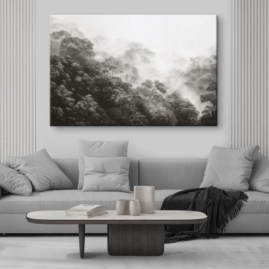 Pășiți într-o lume de vis cu acest print canvas “Foggy Forest with Trees”. Imaginați-vă că sunteți învăluit într-o ceață moale, unde copacii șoptesc secrete, iar aerul este proaspăt și răcoritor. Această piesă nu decorează doar un perete, ci transformă un spațiu, oferindu-i acea atmosferă confortabilă, de natură, pe care o dorim cu toții. Imaginați-vă-o deasupra unei canapele confortabile sau într-un colț de lectură liniștit. Dintr-o dată, nu mai este doar o cameră – este o evadare. Perfectă pentru cei care apreciază o notă de mister și profunzime, această operă de artă invită la visare cu ochii deschiși și la gânduri senine. Cine nu și-ar dori să se piardă în aceste straturi de verde și gri moale?