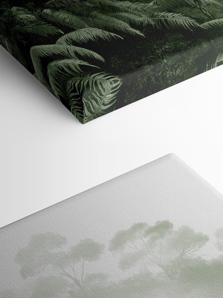 Transportați-vă într-o evadare liniștită cu această imprimare uimitoare pe pânză, care prezintă un grup de palmieri cuibărit într-o pădure luxuriantă. Imaginați-vă că vă plimbați printr-o livadă senină, cețoasă, cu aerul plin de parfumurile subtile ale naturii. Această operă de artă nu doar decorează un perete, ci invită o gură de aer proaspăt în spațiul dvs.