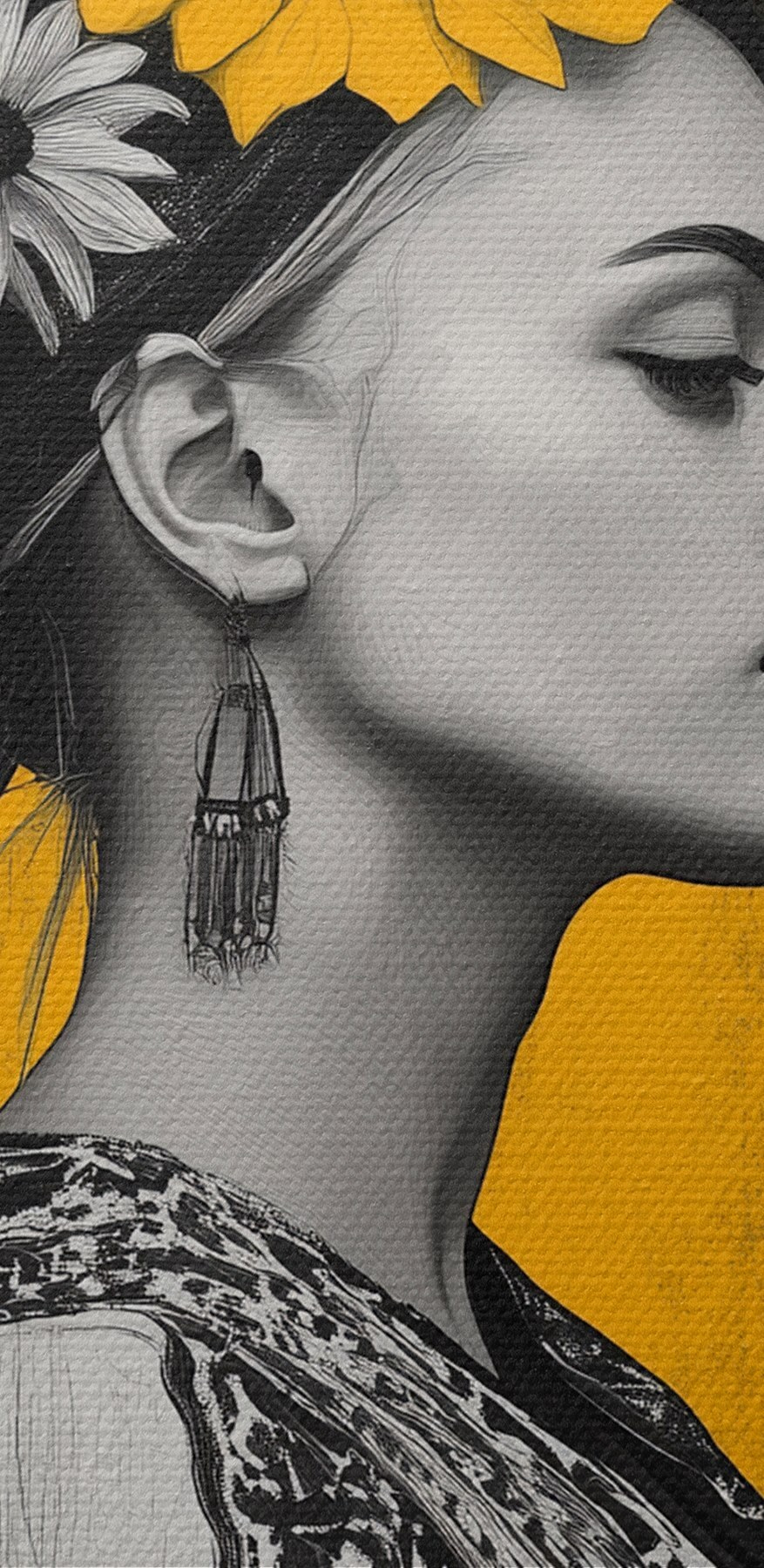 Înveseliți orice spațiu cu această imprimare pe pânză vibrantă care prezintă un trio de femei încoronate de floarea-soarelui, un semn al bucuriei și căldurii. Contrastul izbitor dintre galbenul îndrăzneț și monocromul moale atrage privirea fără efort, creând o atmosferă jucăușă, dar sofisticată. Imaginați-vă acest tablou agățat într-un colț de lectură confortabil, unde stârnește conversații și poate chiar un zâmbet sau două. Perfectă pentru cei care iubesc frumusețea naturii și flerul artistic, aceasta adaugă acea notă specială – ca o gură de aer proaspăt într-o zi însorită. Este mai mult decât un simplu decor; este un sentiment.