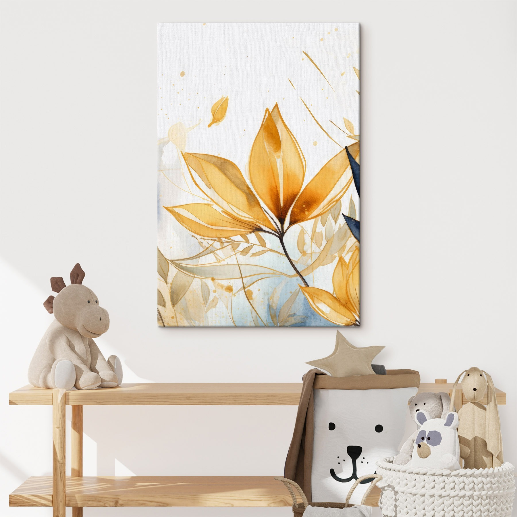 Transformați-vă spațiul cu “Delicate Hues of Nature’s Beauty”. Această imprimare uimitoare pe pânză surprinde eleganța moale a frunzelor care dansează în acuarele delicate. Imaginați-vă-o deasupra canapelei – imaginați-vă sorbind cafea în timp ce priviți acele galbene calde și însorite și acele albastre liniștite. Este ca și cum ai invita o bucățică de natură chiar în casa ta. Prietenii s-ar putea să vă întrebe dacă aveți o grădină secretă! Perfectă pentru a adăuga o notă de seninătate, această piesă aduce un vibe relaxat care încurajează visarea cu ochii deschiși. Lăsați-o să stârnească bucurie de fiecare dată când treceți pe lângă ea!
