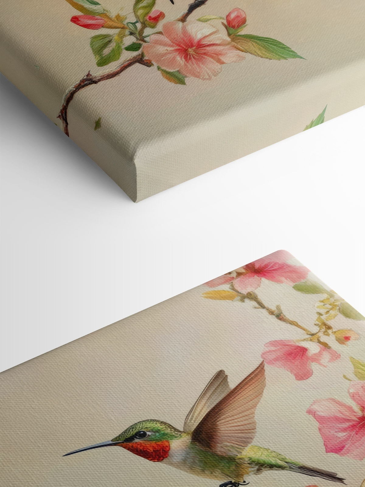 Imaginați-vă o zi însorită, cu colibri zburând fericiți, aripile lor mici creând un bâzâit blând. Acest print pe pânză surprinde acest moment încântător, prezentând un trio fermecător al acestor mici minuni cocoțate pe o ramură delicată împodobită cu flori frumoase. Perfectă pentru a înveseli orice cameră, aceasta invită seninătatea și o notă de natură în interior. De fiecare dată când cineva trece pe lângă ele, este ca și cum ar asista la un dans magic și cine nu are nevoie de un pic de fantezie? Aduceți exteriorul în casă și lăsați aceste păsări vibrante să stârnească bucurie și mirare în viața de zi cu zi.