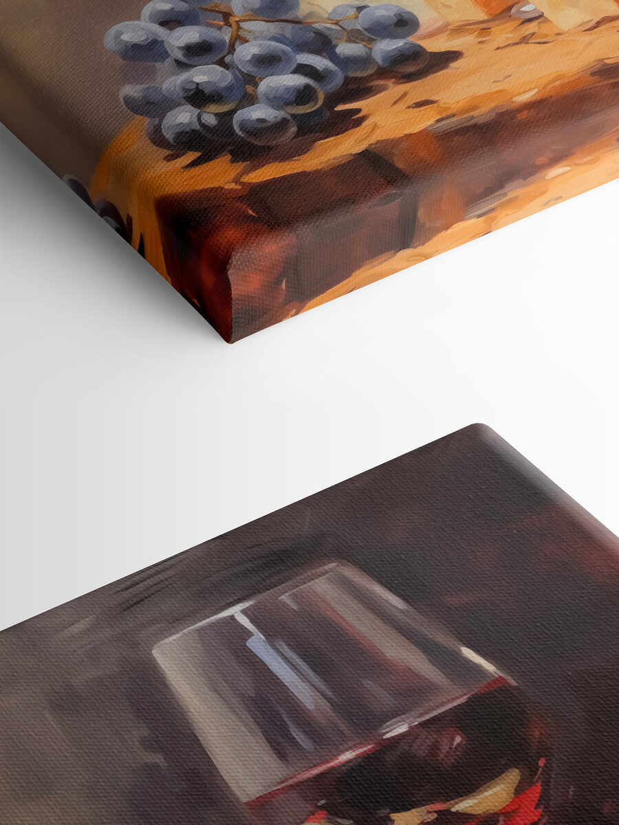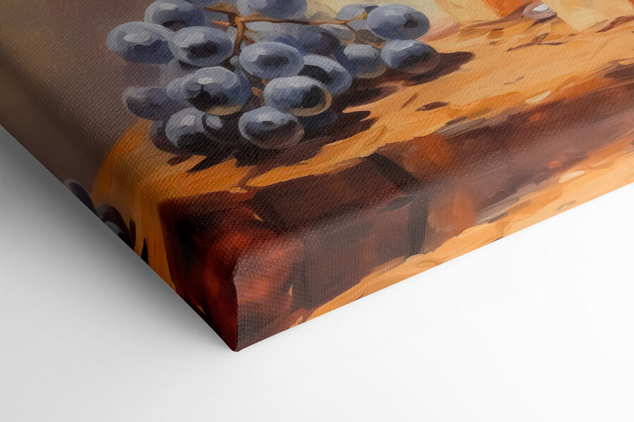 Înălțați-vă spațiul cu această imprimare fermecătoare pe pânză, “Pahar de vin și brânză pe o masă”. Imaginați-vă acest lucru: o seară confortabilă, strălucirea moale a lămpilor și un pahar de vin roșu care așteaptă răbdător. Adăugați niște brânză artizanală și struguri și, dintr-o dată, sunteți transportat la un bistro ascuns în Franța. Culorile bogate și atmosfera primitoare ale acestei lucrări de artă ar putea provoca chiar și nopți spontane cu vin și brânză cu prietenii. Este perfectă pentru bucătării, zone de luat masa sau oriunde doriți să aduceți un strop de căldură și o notă de indulgență. Cine ar fi crezut că arta murală îți poate face foame? Noroc pentru bunul gust!