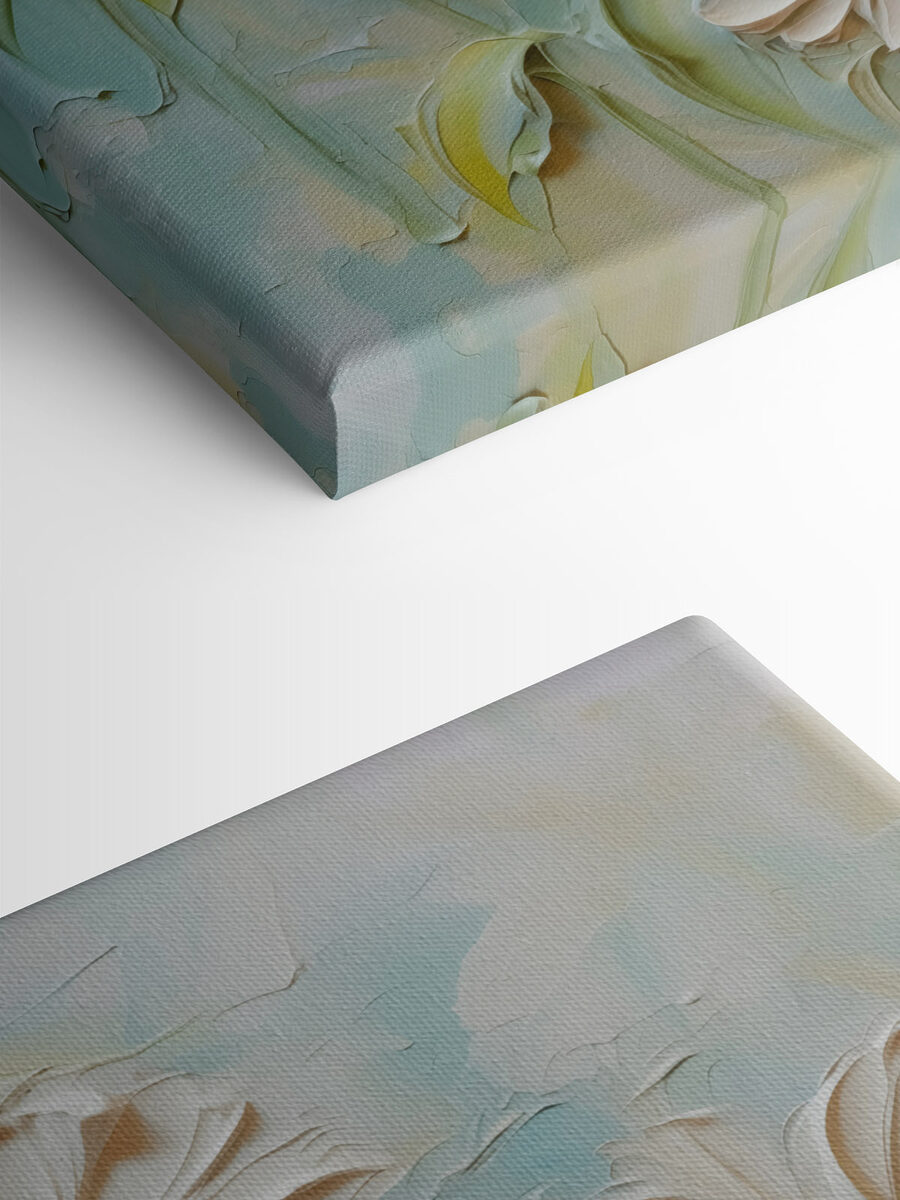 Înveselește-ți spațiul cu această imprimare uimitoare pe pânză cu flori albe, fiecare petală întinzându-se practic pentru o îmbrățișare. Imaginați-vă că treceți pe lângă ea și simțiți șoapta blândă a naturii, sau cum ar putea fura spectacolul în camera dvs. de zi. Paleta de culori blânde creează o atmosferă primitoare care spune: “Intră, ia o ceașcă de ceai și hai să discutăm”. Perfectă pentru acele colțuri confortabile sau un hol vesel, aduce o notă de eleganță fără a striga după atenție. Cine nu și-ar dori un pic de farmec floral pentru a-și lumina ziua? Este ca și cum ai avea o grădină, fără albinele enervante!