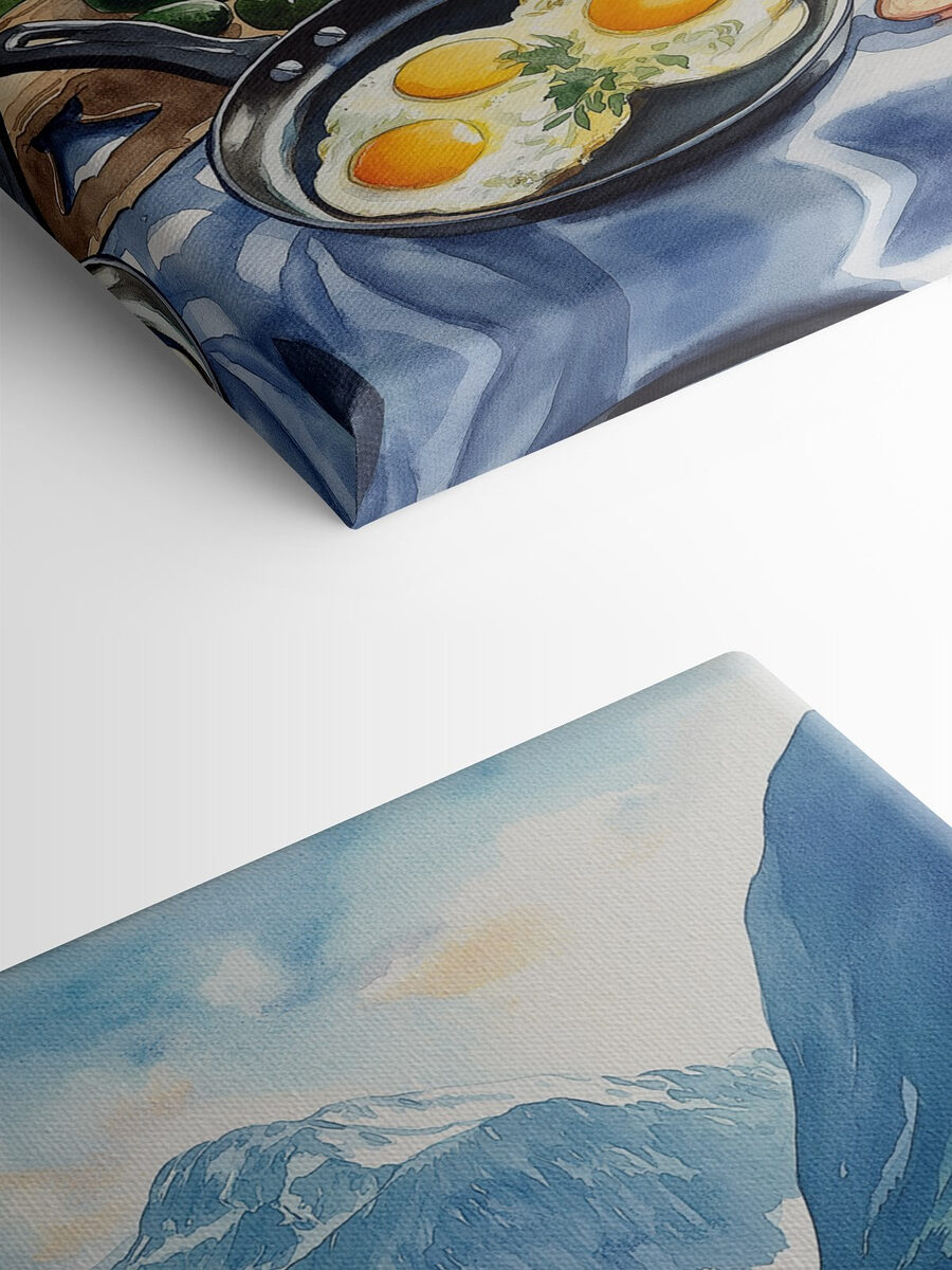 Imaginează-ți asta: o dimineață relaxată lângă un lac liniștit, cu munții șoptindu-ți vorbe dulci în fundal. Acest print pe pânză, “Van lângă un lac”, surprinde perfect această magie. Imaginează-ți cum întorci clătitele sau cum prepari cafeaua în timp ce soarele străjuiește aceste vârfuri maiestuoase. Aproape că puteți mirosi aerul proaspăt și auzi bătaia blândă a apei pe mal. Nu este doar artă; este o invitație de a savura momentele simple ale vieții. Agățați-o în bucătărie sau în sufragerie și lăsați-o să vă reamintească în fiecare zi că aventura vă așteaptă chiar dincolo de pragul ușii – de preferință cu niște ouă și o companie minunată!