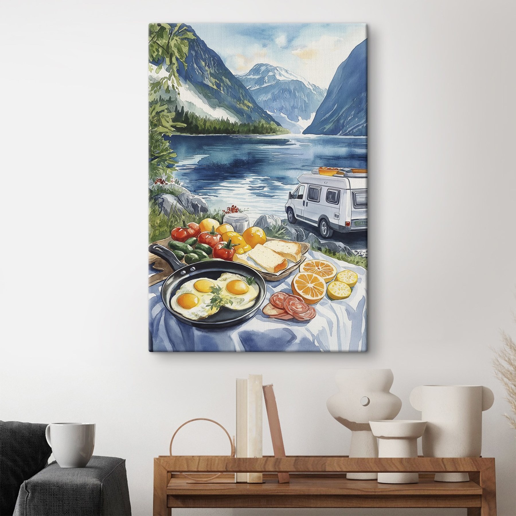Imaginează-ți asta: o dimineață relaxată lângă un lac liniștit, cu munții șoptindu-ți vorbe dulci în fundal. Acest print pe pânză, “Van lângă un lac”, surprinde perfect această magie. Imaginează-ți cum întorci clătitele sau cum prepari cafeaua în timp ce soarele străjuiește aceste vârfuri maiestuoase. Aproape că puteți mirosi aerul proaspăt și auzi bătaia blândă a apei pe mal. Nu este doar artă; este o invitație de a savura momentele simple ale vieții. Agățați-o în bucătărie sau în sufragerie și lăsați-o să vă reamintească în fiecare zi că aventura vă așteaptă chiar dincolo de pragul ușii – de preferință cu niște ouă și o companie minunată!