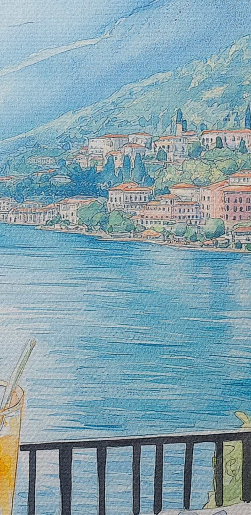 Imaginează-ți că te afunzi într-un colț confortabil al bucătăriei tale, cu aroma de pizza plutind în aer. Această pictură în acuarelă surprinde acel moment de vis – o felie delicioasă de pizza cu pepperoni combinată cu băuturi răcoritoare, totul pe fundalul apelor senine și al dealurilor luxuriante. Este acea evadare perfectă care face casa să se simtă ca o mică bucată de vacanță. Imaginează-ți-o atârnată pe perete, aducând căldură și bucurie spațiului tău. Fiecare privire ți-ar putea aminti de după-amiezele leneșe petrecute cu prietenii, râsetele bubuind ca băuturile carbogazoase. Nu este doar artă; este o felie de fericire cotidiană!
