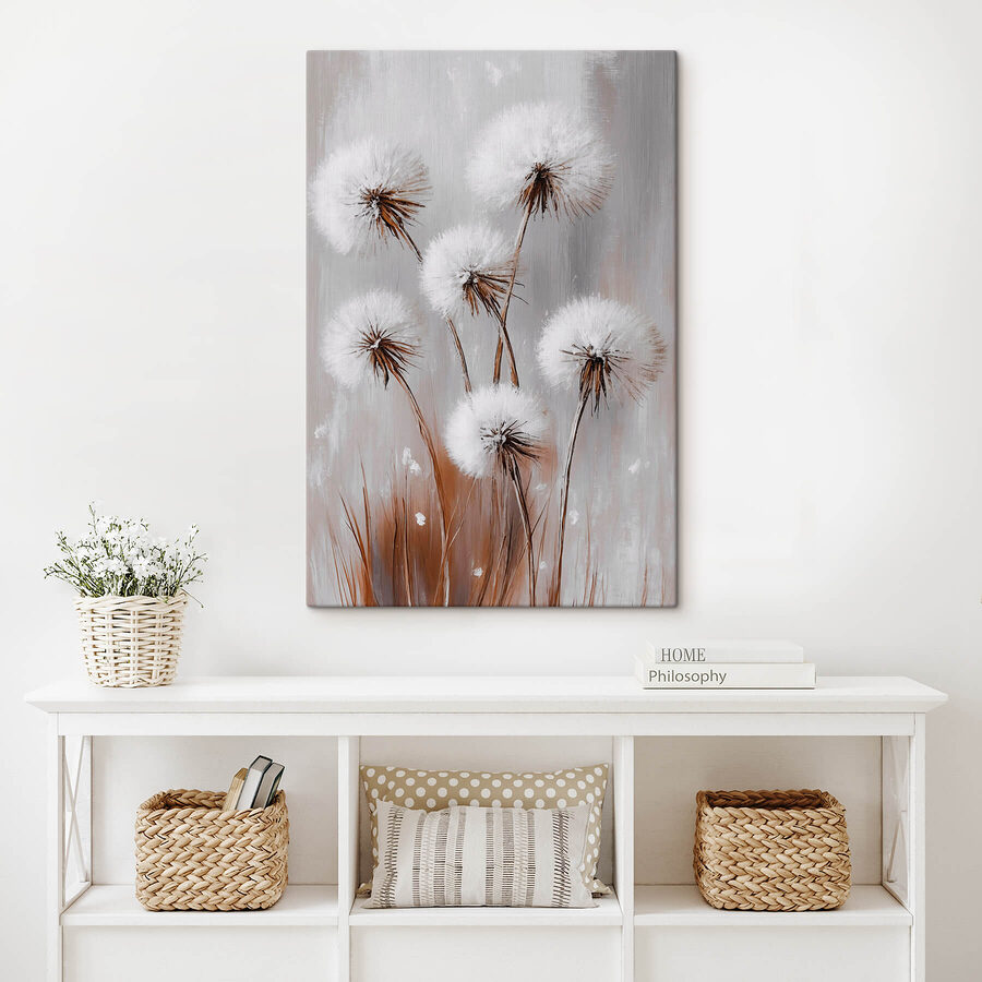 Înveseliți orice spațiu cu această încântătoare imprimare pe pânză, “Grup de flori albe pufoase”. Este ca o gură de aer proaspăt – moale, de vis și un pic capricios. Imaginați-vă că intrați într-o cameră și vedeți aceste flori pufoase, care vă ridică instantaneu dispoziția. Este perfect pentru acel colț confortabil sau chiar pentru un birou senin. Culorile blânde se potrivesc perfect, ca acel pulover confortabil pe care nu vrei să îl dai jos niciodată. În plus, aduce sentimentul unei pajiști însorite în interior, fără a fi nevoie să strănuți de polen. Deci, de ce să nu lăsați aceste flori minunate să aducă o atingere a magiei naturii pe pereții dvs.? La urma urmei, cine nu iubește puțină pufoșenie în viața sa?