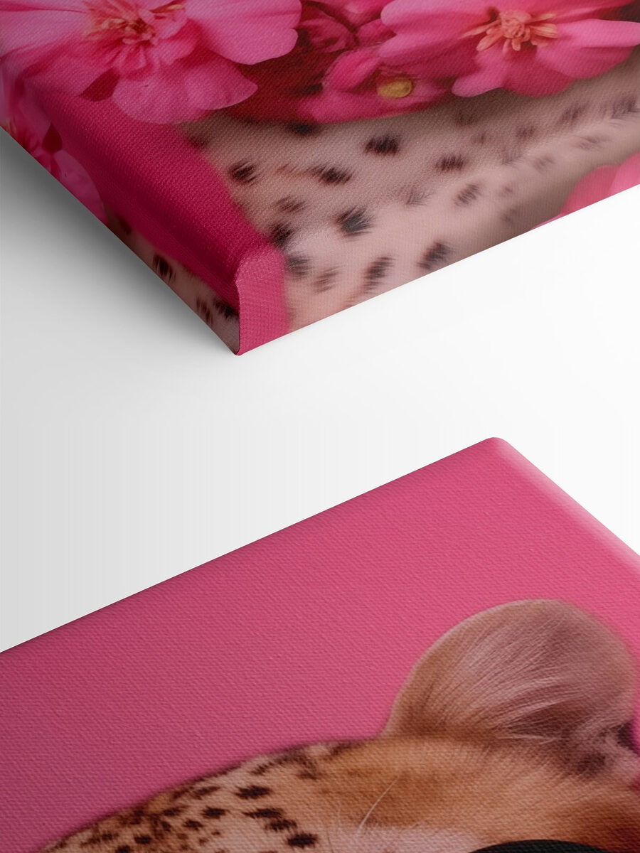 Faceți cunoștință cu noua dvs. piesă statement: o imprimare pe pânză cu un leopard care poartă ochelari eleganți și un colier floral fabulos. Serios, aceasta este arta care oscilează între clasic și excentric – este ca prietenul cool cu care toată lumea vrea să stea. Imaginează-ți această imprimare vibrantă luminând camera de zi sau inspirând chicoteli într-un colț de lectură confortabil. Este un memento că viața este prea scurtă pentru a lua totul în serios, nu-i așa? Cu acel strop de roz și acele flori adorabile, nu este doar decor; este un starter de conversație. Aduceți complimentele!