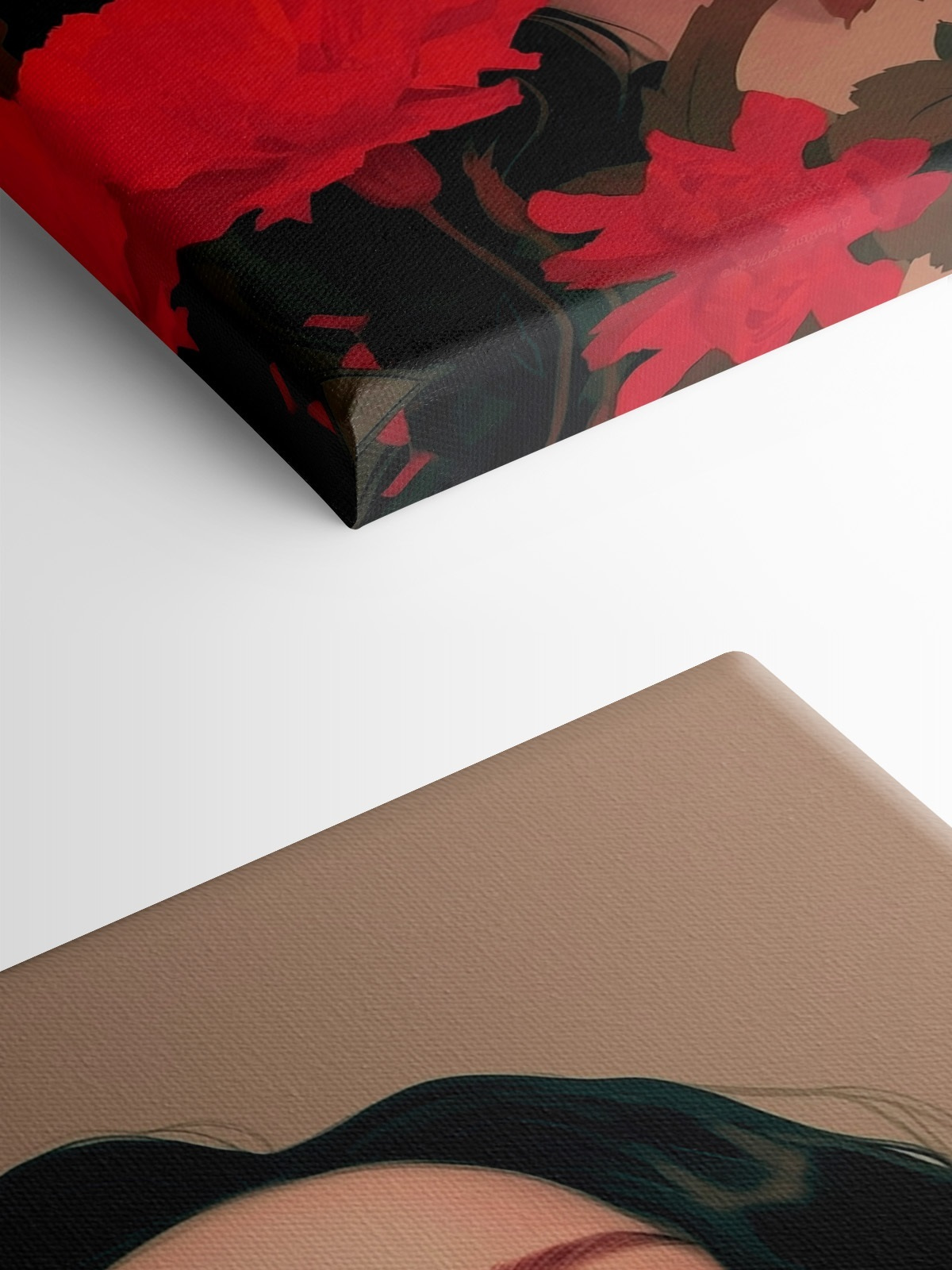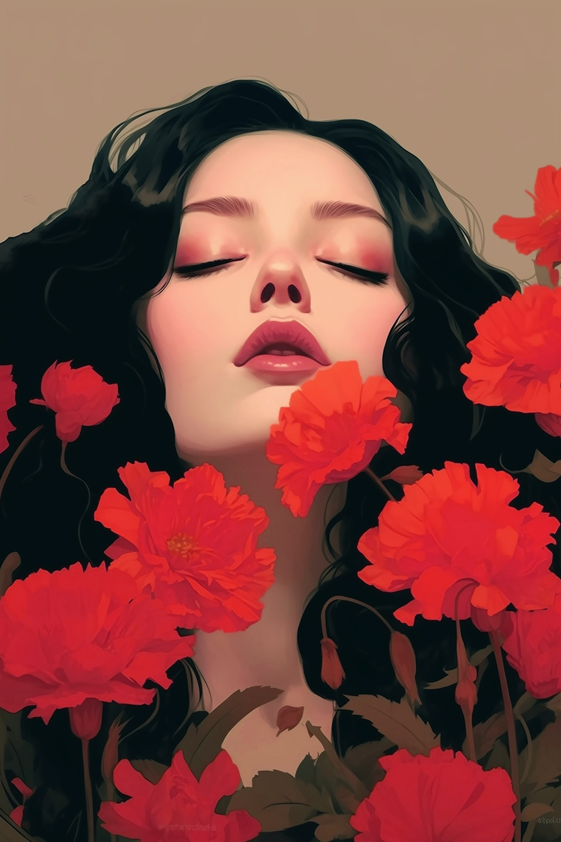 Imaginați-vă că intrați într-o cameră și sunteți întâmpinați de o imprimare uimitoare pe pânză care înfățișează o femeie cu păr negru, lung și fluid, complet învăluită de flori roșii vibrante. Este ca și cum ai păși într-un vis, unde culorile pulsează cu viață, iar fiecare petală pare să șoptească un secret. Această piesă armonizează frumusețea naturii și profunzimea emoțiilor, făcând-o perfectă pentru un living confortabil sau un dormitor senin. O singură privire la ea și grijile zilei se topesc, lăsând doar pace și inspirație. Nu este doar artă; este un sentiment – ca o îmbrățișare caldă într-o zi friguroasă. Adaugă un strop de farmec îndrăzneț spațiului tău și lasă pereții tăi să vorbească!