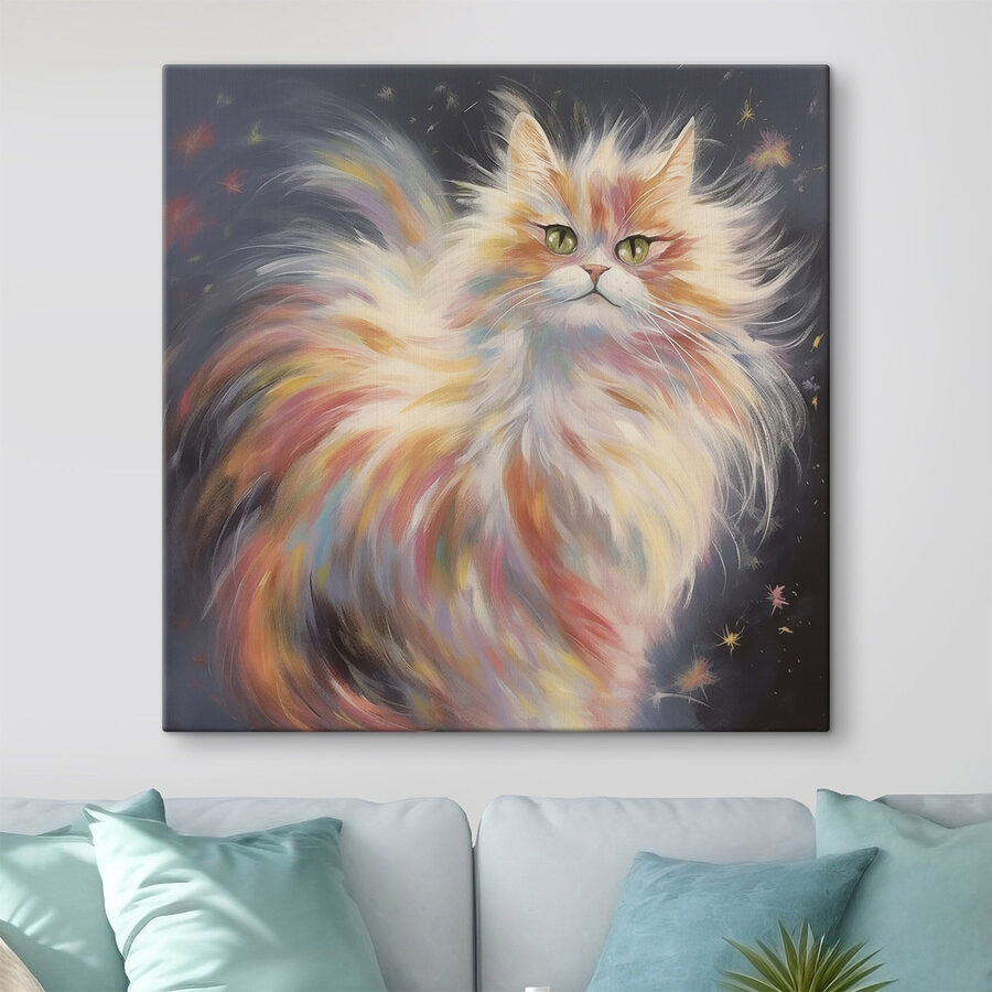 Transformați un perete într-un colț confortabil de farmec felin cu această imprimare pe pânză vibrantă cu o pisică pufoasă care pare să toarcă direct de pe pânză. Imaginați-vă-o agățată deasupra colțișorului dvs. preferat de lectură sau adăugând un strop de fantezie unei camere de familie. Aceste culori îndrăznețe? Ele aduc o energie jucăușă care animă orice spațiu. Prietenii se vor opri, vor arăta cu degetul și vor întreba: “Care este povestea din spatele acelei mingi de păr?” Cu siguranță va stârni niște conversații amuzante. În plus, cui nu-i place o față de pisică care se uită la ei, gata să le înveselească ziua?