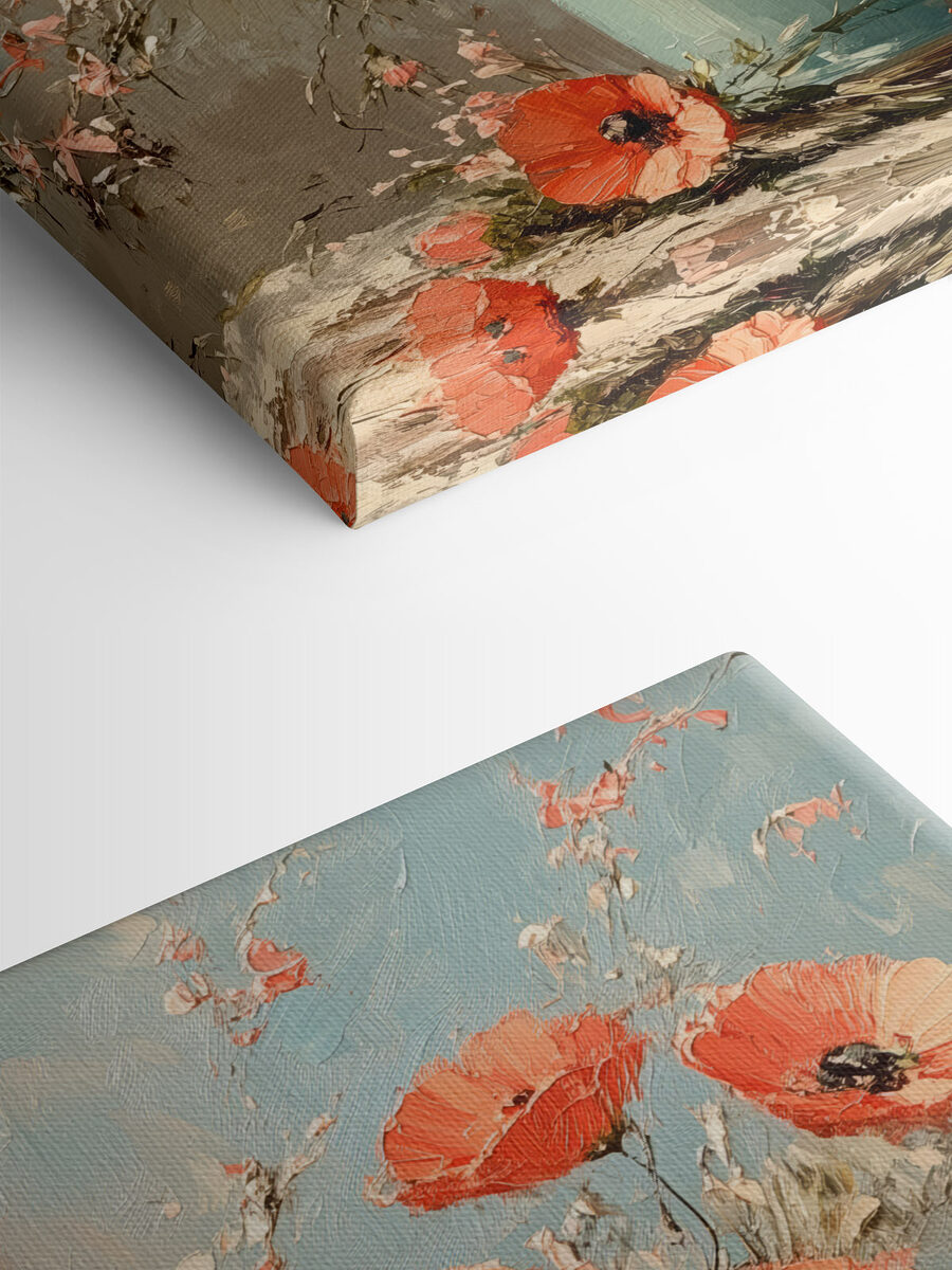 Înveseliți orice spațiu cu această uimitoare “Pictură pe pânză cu flori într-o vază albastră”. Acești maci veseli par să danseze cu bucurie, nu-i așa? Imaginați-vă: intrați după o zi lungă și bam! Aceste flori vibrante vă întâmpină ca o îmbrățișare caldă. Vaza de un albastru blând adaugă o notă răcoritoare, ceea ce o face perfectă pentru inițierea unei conversații. Imaginați-vă prietenii admirând, “Wow, unde ai găsit asta?” Ei bine, sunt lucrurile mărunte, nu-i așa? Lăsați această piesă să vă ducă într-o grădină liniștită, chiar dacă este doar în camera dvs. de zi. Un strop de natură care nu se ofilește niciodată – sună perfect, nu-i așa?