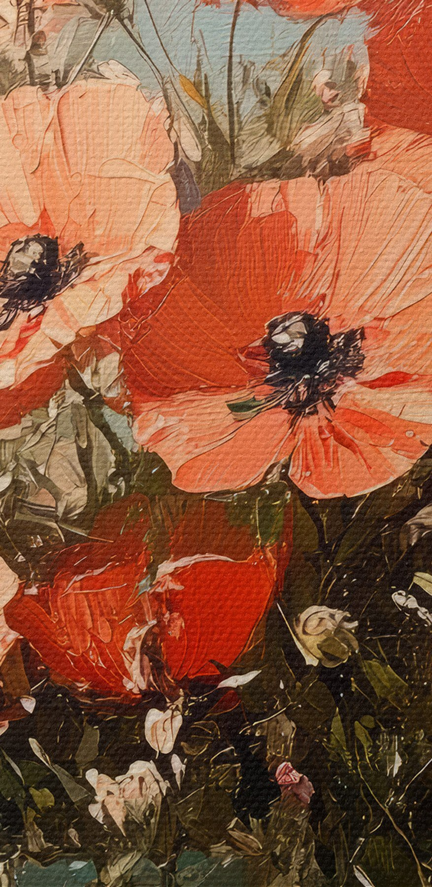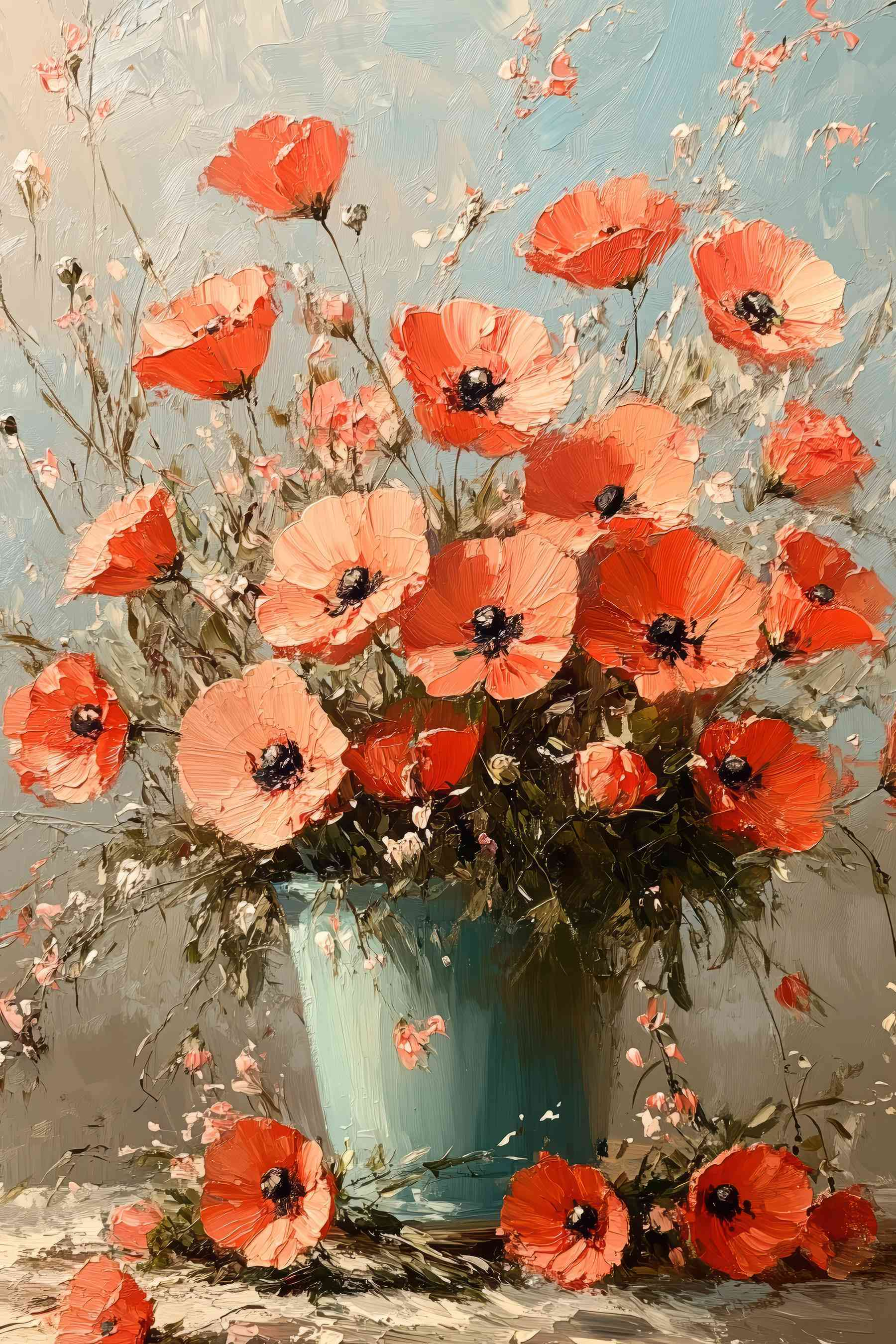 Înveseliți orice spațiu cu această uimitoare “Pictură pe pânză cu flori într-o vază albastră”. Acești maci veseli par să danseze cu bucurie, nu-i așa? Imaginați-vă: intrați după o zi lungă și bam! Aceste flori vibrante vă întâmpină ca o îmbrățișare caldă. Vaza de un albastru blând adaugă o notă răcoritoare, ceea ce o face perfectă pentru inițierea unei conversații. Imaginați-vă prietenii admirând, “Wow, unde ai găsit asta?” Ei bine, sunt lucrurile mărunte, nu-i așa? Lăsați această piesă să vă ducă într-o grădină liniștită, chiar dacă este doar în camera dvs. de zi. Un strop de natură care nu se ofilește niciodată – sună perfect, nu-i așa?