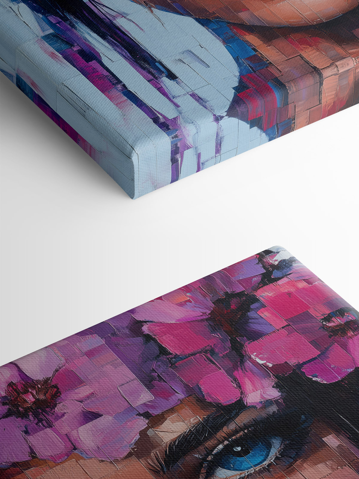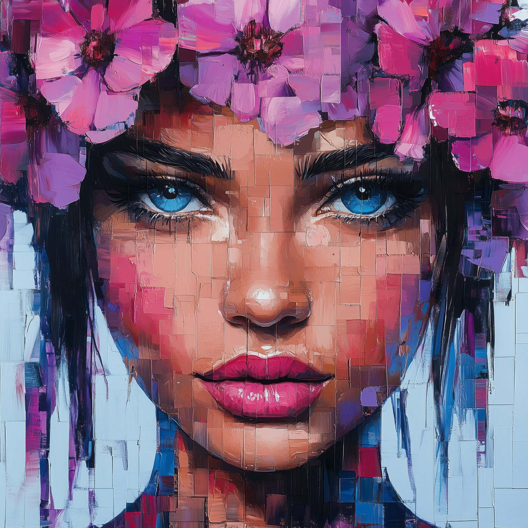 Înveseliți orice perete cu această imprimare captivantă pe pânză a unei femei împodobite cu flori vibrante în păr. Nu este doar un chip frumos; are personalitate! Acei ochi albaștri izbitori? Te vor atrage înăuntru, precum o ceașcă caldă de cafea într-o dimineață răcoroasă. Imaginați-vă această piesă agățată într-un colț confortabil, creând o atmosferă senină care șoptește “Respiră adânc”. Este perfectă pentru iubitorii de natură și artă deopotrivă. În plus, este un bun început de conversație – cine nu vrea să discute despre flori și frumusețe? Perfect pentru a adăuga o notă de farmec spațiului tău!