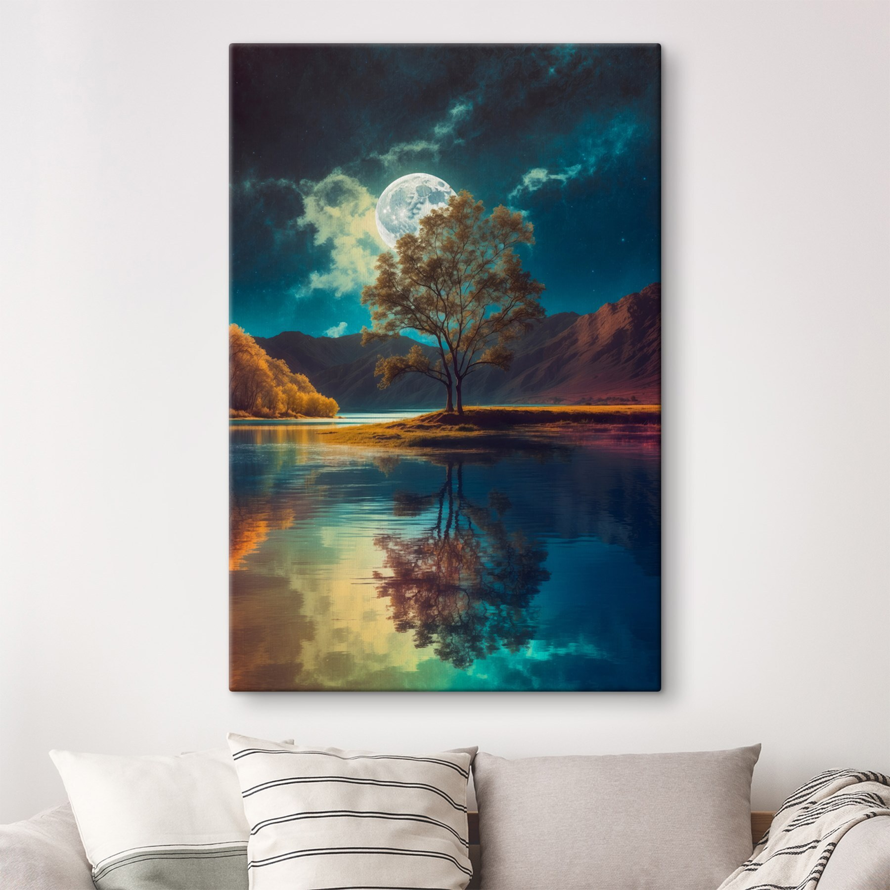 Imaginați-vă o noapte senină lângă apă, unde un copac singuratic stă mândru sub strălucirea unei luni uriașe. Aceasta este atmosfera pe care “Tablouri Tree on the Water” o aduce în spațiul tău. Nuanțele sale blânde și reflexiile izbitoare vă invită să faceți o pauză și să respirați adânc – perfect pentru acele momente când viața devine un pic prea agitată. Este ca și cum ai aduce o bucată de natură liniștită în interior, fără insecte. Agățați-o în sufragerie și vă veți pierde în gânduri, poate chiar visând la escapade pe malul lacului. O atingere de calm, o șoaptă de magie – cu siguranță, un spectacol de excepție!