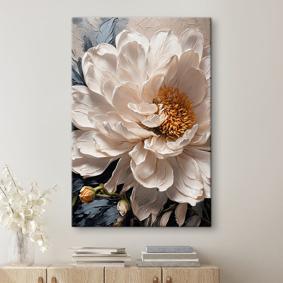 Aduceți o notă de natură în interior cu această imprimare uimitoare pe pânză, “Beautiful Bloom in Soft Tones”. Imaginați-vă o singură floare, de dimensiuni mari, care se scaldă în lumina soarelui – petalele sale moi și cremoase vă invită să le atingeți, aproape ca o îmbrățișare blândă pentru pereții dumneavoastră. Perfectă pentru un living confortabil sau un dormitor senin, această operă de artă șoptește eleganță și căldură. Este ca și cum ai avea o bucățică de grădină, fără a fi nevoie să o uzi. În plus, vă va face să zâmbiți de fiecare dată când treceți pe lângă ea. Sincer, cine nu ar vrea să fie întâmpinat de o asemenea frumusețe? Este o stare de spirit instantanee!