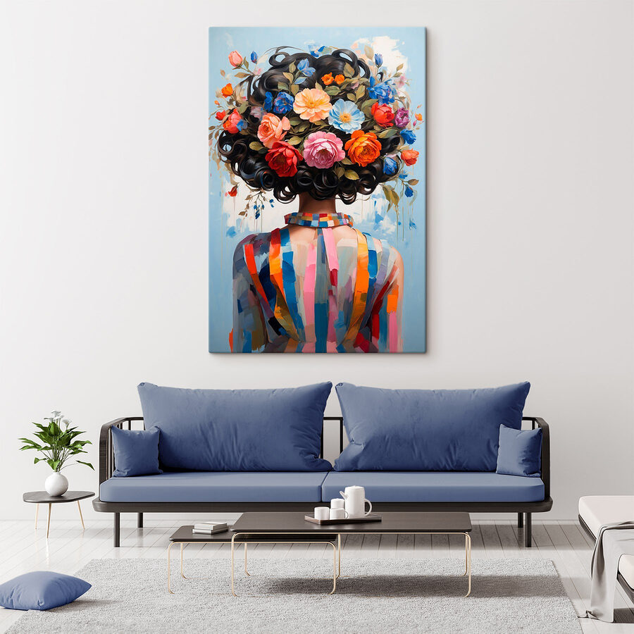 Înveseliți orice spațiu cu această imprimare uimitoare pe pânză care prezintă o femeie împodobită cu un buchet de flori vibrante. Este ca și cum ai aduce o explozie de primăvară în casa ta pe tot parcursul anului. Imaginați-vă această frumusețe atârnată pe perete – oamenii se vor opri și o vor admira, poate chiar vă vor întreba secretul găsirii unui astfel de decor unic. Culorile sunt vii, aproape dansante, iar coroana florală? Este perfectă pentru a visa cu ochii deschiși la picnicurile de vară. Fiecare privire este un memento blând pentru a ne opri și a mirosi trandafirii (la figurat, desigur) și pentru a adăuga puțină bucurie vieții de zi cu zi. Fie că este vorba de o cameră de zi sau de un colț confortabil, această imprimare are un mod de a împleti căldură și farmec în orice colț. Pereții tăi merită un pic de farmec, nu crezi?