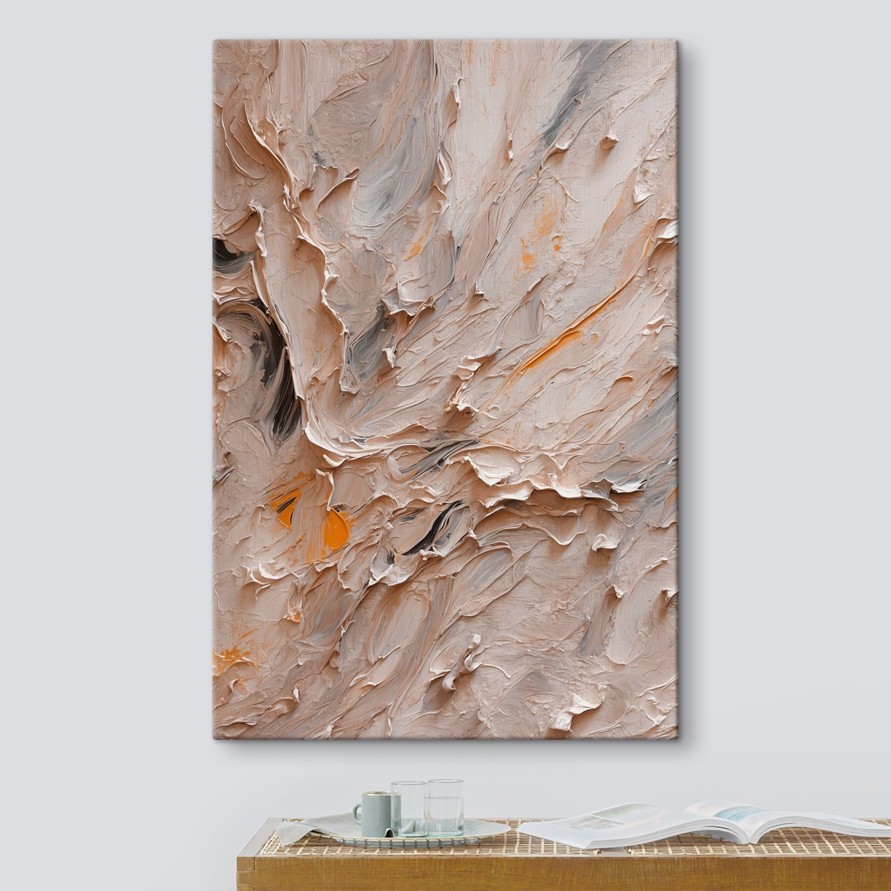 Adăugați o notă de eleganță în orice cameră cu “Tablouri Texture and Flow in Soft Hues”. Această piesă șoptește liniște, ca o briză blândă care dansează într-o după-amiază însorită. Texturile fluide și culorile moi creează o îmbrățișare caldă care te face să vrei să te afunzi în fotoliul tău preferat cu o carte bună – sau poate doar să sorbi o ceașcă de ceai confortabilă. Imaginați-vă-o agățată deasupra unei canapele, inspirând conversații dulci sau weekenduri leneșe. Nu este doar o operă de artă; este o vibrație. Perfect pentru momentele în care lumea pare un pic prea zgomotoasă – lăsați aceste nuanțe liniștitoare să își facă treaba. Cine ar fi crezut că un perete poate fi atât de primitor?