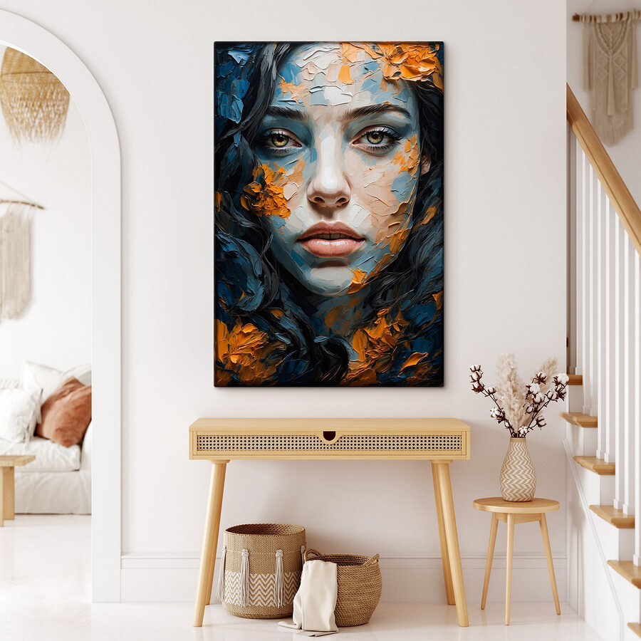 Imaginați-vă o pată de culoare pe peretele dvs. care stârnește instantaneu conversația. Această imprimare pe pânză, care prezintă o femeie izbitoare cu vopsea afișată cu îndrăzneală pe față, aduce energie vibrantă în orice spațiu. Nu este doar artă; este o expresie, o declarație. Cu texturile sale bogate și privirea captivantă, vă atrage, aproape ca și cum ar avea un secret de împărtășit.