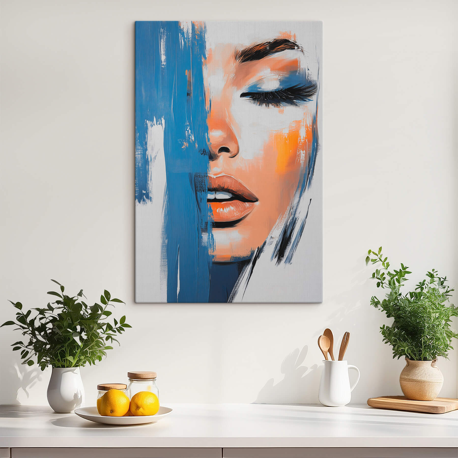 Aduceți un strop de frumusețe îndrăzneață în spațiul dvs. cu această imprimare captivantă pe pânză. Dispunând de o imagine izbitoare a feței unei femei parțial întunecată de tușe vibrante de albastru, este piesa centrală perfectă pentru oricine iubește decorul unic. Imaginați-vă că intrați într-o cameră, iar ochii vă sunt atrași instantaneu de această operă de artă dramatică. Șoptește povești, evocă emoții și stârnește conversații. Este grozavă pentru o cameră de zi sau chiar pentru un colțișor de lectură confortabil – oriunde ar ajunge, este menită să amestece lucrurile. Adăugați un strop de intrigă și priviți cum vin complimentele!