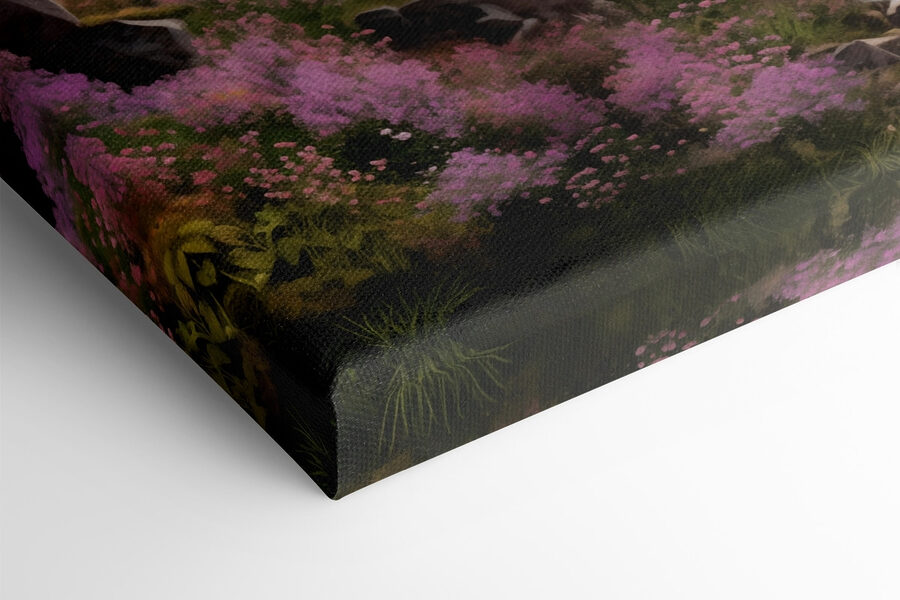 Imaginați-vă acest lucru: un râu strălucitor șerpuind printr-o vale luxuriantă, flancat de munți maiestuoși, acoperiți de zăpadă. Acest print pe pânză este ca o mini-vacanță chiar în sufrageria dvs. Imaginați-vă sorbind un ceai în timp ce priviți florile roz vibrante care împânzesc peisajul, culorile atât de vii încât aproape fredonează de bucurie. Este o evadare senină din agitația cotidiană, o amintire a faptului că frumusețea naturii este doar la o privire distanță. Această operă de artă șoptește calm, făcând ca orice spațiu să se simtă mai liniștit. Perfect pentru a visa cu ochii deschiși sau pentru a vă lăsa mintea să rătăcească. Este vorba despre a aduce un pic de natură în interior – cine nu și-ar dori asta?