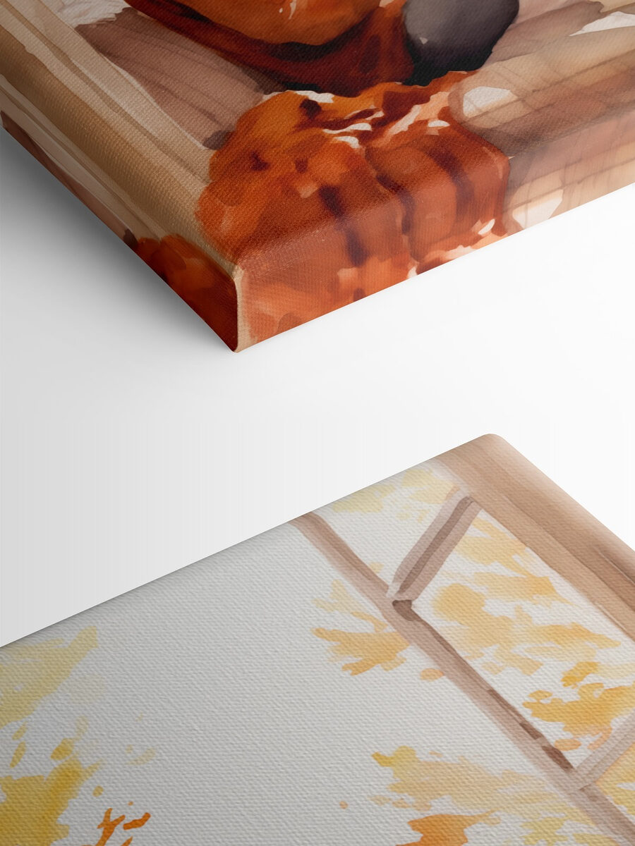 Bucurați-vă de această minunată imprimare pe pânză a unei femei care se relaxează pe pervazul unei ferestre cu o carte bună. Imaginați-vă lumina blândă a soarelui care se revarsă, aruncând nuanțe calde, aurii, care dansează de-a lungul paginilor. Este acea atmosferă perfectă de toamnă, frunzele fluturând afară, în timp ce înăuntru vă simțiți ca într-o retragere confortabilă din lume. Imaginați-vă sorbind un ceai, înfășurat într-o pătură moale, cu această lucrare de artă creând atmosfera. Vă invită să respirați adânc, să vă relaxați și să vă pierdeți într-o poveste. Perfectă pentru a înveseli un colț de lectură sau pentru a adăuga farmec oricărui spațiu. O atingere încântătoare de liniște chiar pe peretele tău!