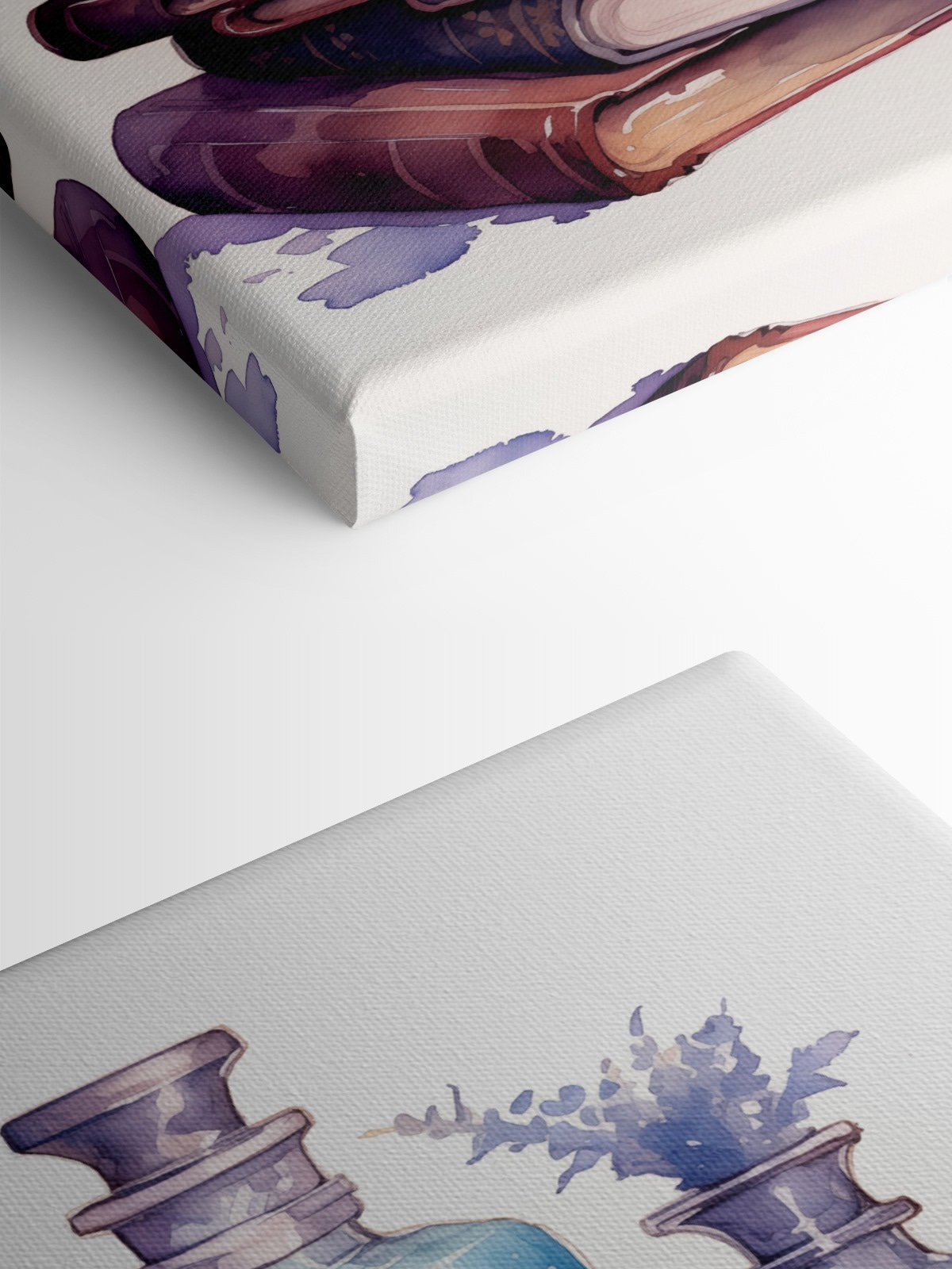 Scufundați-vă în această scenă fermecătoare în acuarelă, cu un teanc fermecător de cărți și sticle elegante. Imaginați-vă nuanțele blânde în timp ce acestea șoptesc povești de aventură și povești uitate, în timp ce florile delicate își fac apariția, adăugând o notă de grație naturii. Este ca și cum ai avea o mică bibliotecă de secrete pe perete. Perfectă pentru oricine dorește să aducă un aer confortabil într-un colț de lectură sau într-un colț senin al casei sale. Imaginați-vă cum vă așezați într-un fotoliu confortabil, cu o băutură caldă în mână, simțindu-vă transportați într-o lume de vis în care fiecare privire la această operă de artă stârnește puțină bucurie. O modalitate atât de încântătoare de a înfrumuseța orice spațiu!