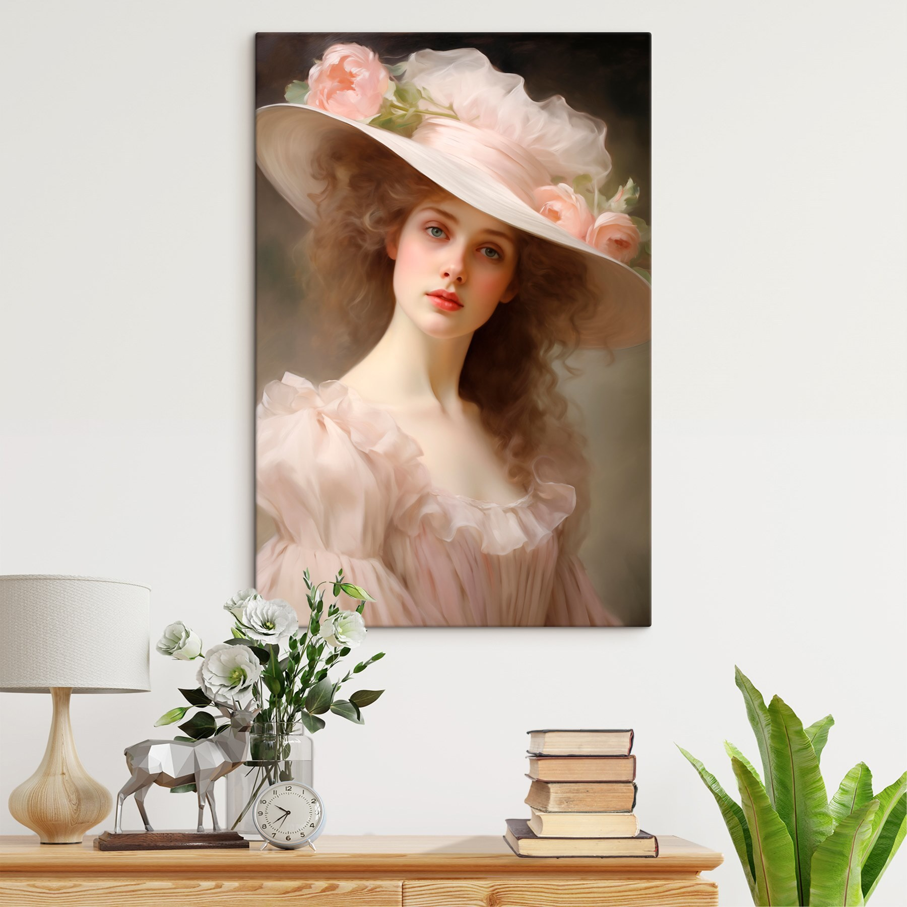 Transformați-vă spațiul cu această imprimare încântătoare pe pânză, “Woman in a Hat”. Este ca o briză blândă de primăvară înfășurată în culori suave, aducând o notă de fantezie și eleganță în orice cameră. Imaginați-vă că treceți pe lângă ea și vă simțiți puțin mai ușor, ca și cum florile din pălăria ei ar putea să vă șoptească secrete de frumusețe și bucurie.