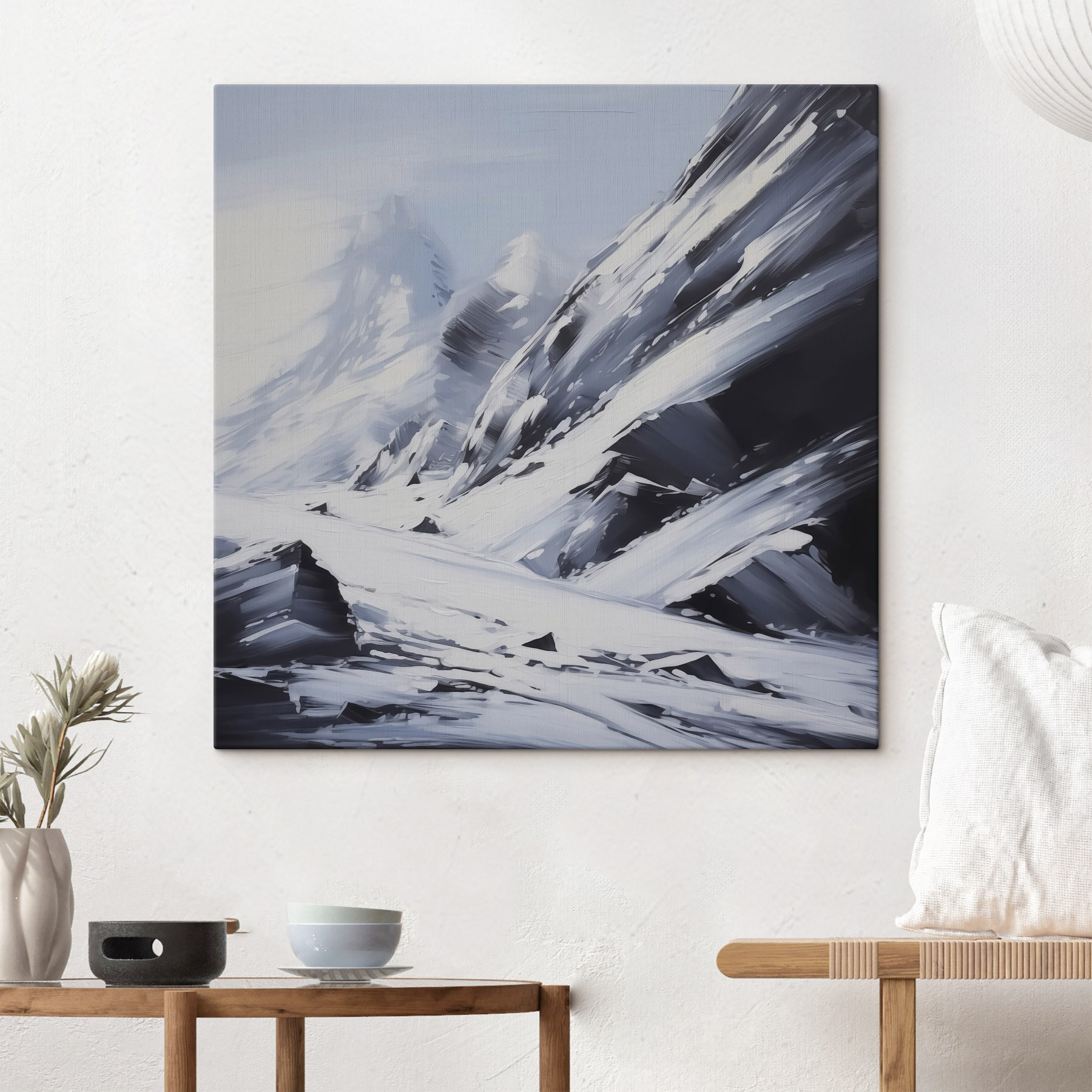 Transformați-vă spațiul cu această imprimare uimitoare pe pânză, “Snowy Mountain Range”. Imaginați-vă acest lucru: un peisaj senin, în care albastrul și albastrul rece al vârfurilor îndepărtate invită la calm în orice cameră. Este ca și cum ai aduce o felie de natură în interior, fără răceala înghețată. Imaginați-vă că vă încolăciți pe canapea, sorbind cacao, în timp ce vă pierdeți în tușele moi ale munților. Perfect pentru acele momente când aveți nevoie de o pauză de la haosul vieții de zi cu zi. Este, de asemenea, un starter de conversație – priviți oaspeții cum arată și se gândesc la frumusețea sa. O mică porție de aventură fără a fi nevoie să vă înveliți!
