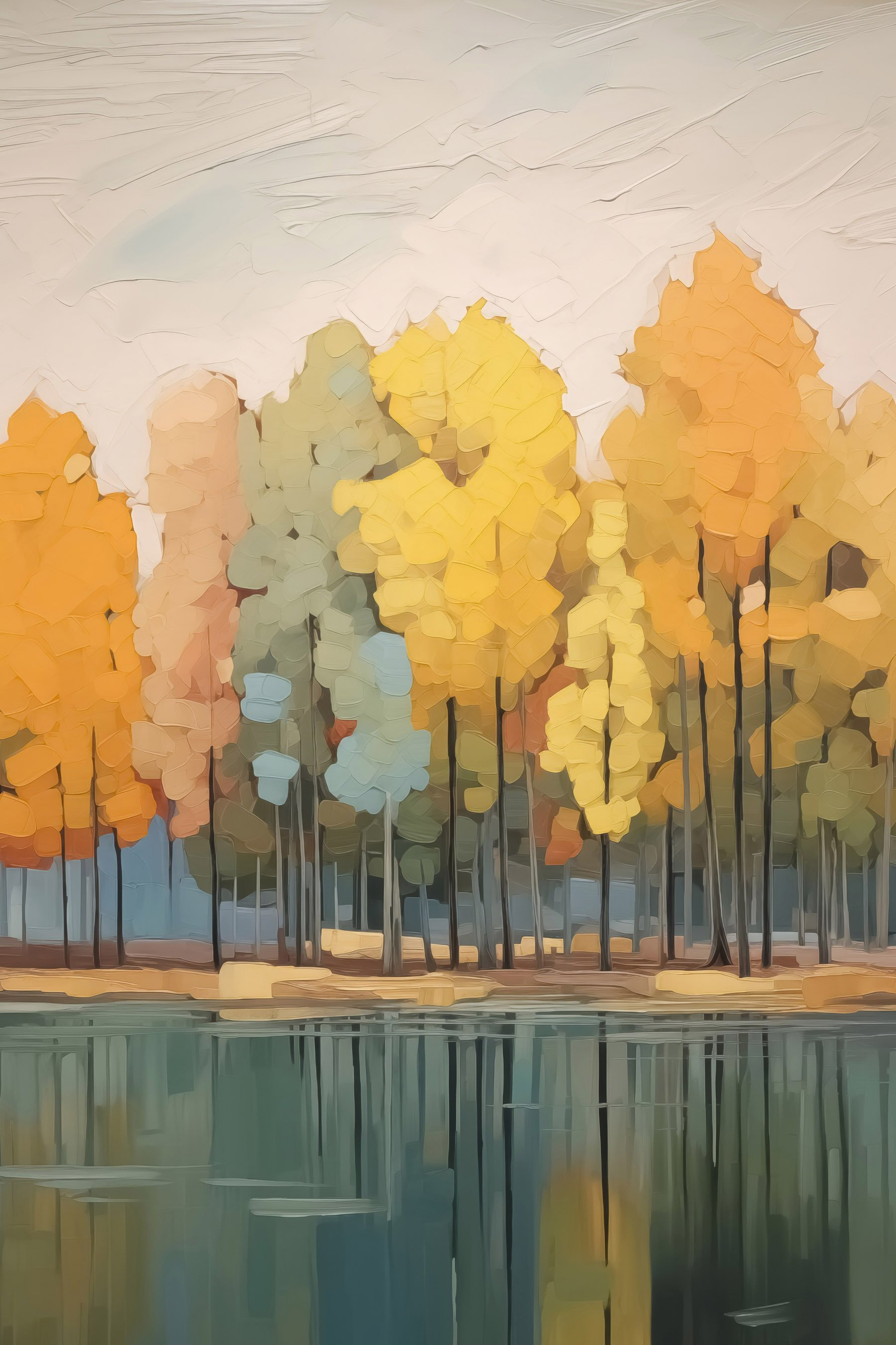 Transformați-vă spațiul cu această imprimare uimitoare pe pânză, “Tablouri Painting of Trees by Water”. Imaginați-vă că faceți o plimbare printr-o pădure de toamnă, unde frunzele își poartă cele mai strălucitoare culori, aproape ca niște confetti ale naturii. Galbenul vibrant și verdele moale dansează împreună, reflectându-se pe apa calmă ca într-un vis de zi. Aduce un sentiment de pace, ca și cum ai sta pe malul unui lac cu o ceașcă caldă de ceai, absorbind totul. Perfect pentru un colțișor confortabil sau poate deasupra unui șemineu. Lăsați această operă de artă să vă șoptească seninătatea în casă, făcând ca fiecare privire să se simtă ca o îmbrățișare blândă din partea naturii.
