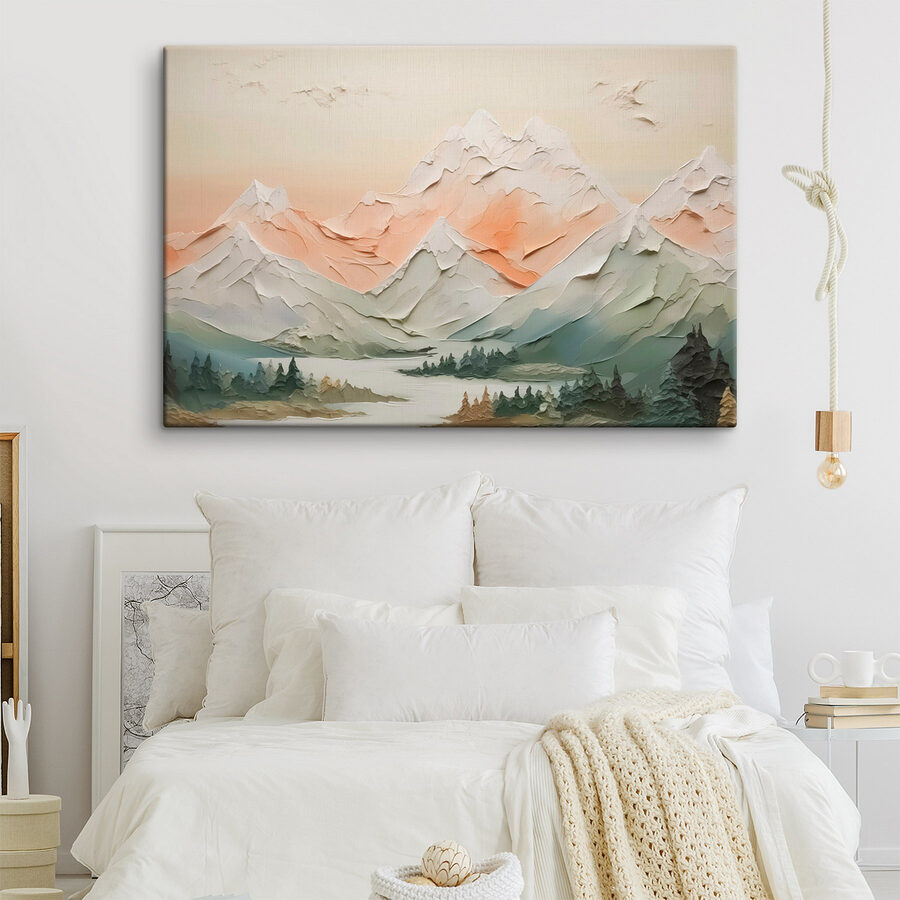 Transformați orice perete într-o evadare montană cu această imprimare superbă pe pânză. Imaginați-vă acest lucru: culori calde care se îmbină, invitându-vă să respirați aerul proaspăt de munte (bine, poate nu la propriu, dar ați înțeles senzația). Vârfurile uimitoare și văile blânde surprind acel sentiment senin de a fi în natură – fără insecte enervante sau drumeții transpirate. Perfectă pentru sufrageriile confortabile sau dormitoarele liniștite, această operă de artă reunește nu doar decorul, ci și simțul calmului, fiind un loc ideal pentru a vă opri, a sorbi un ceai și a reflecta asupra vieții, cum ar fi: “De ce li se spune “drive-thru” dacă trebuie să oprești?” Puțin umor, multă frumusețe – ce nu e de iubit?