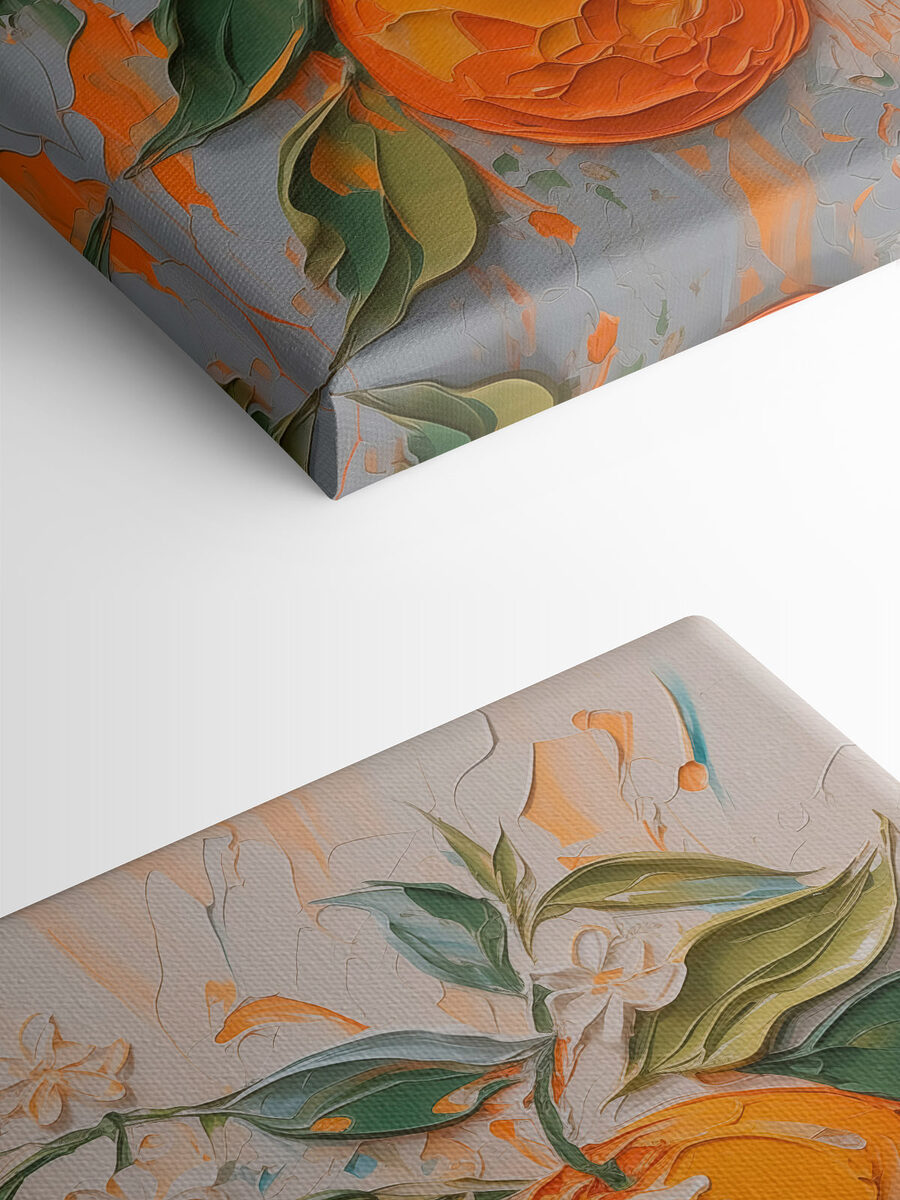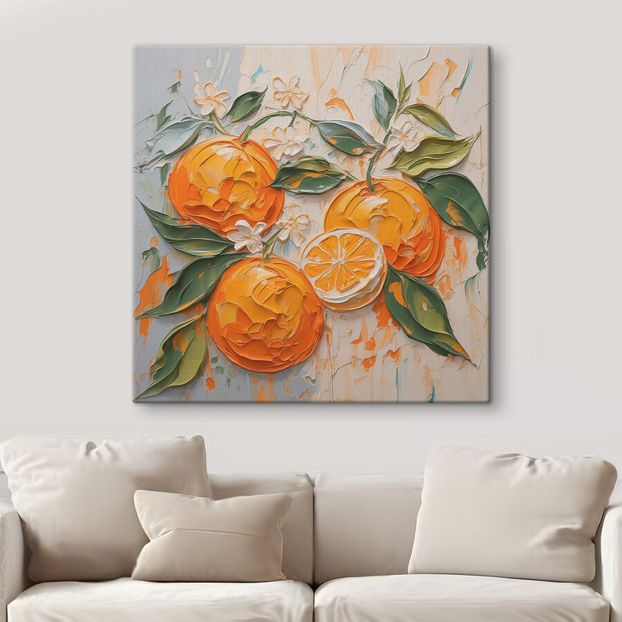 Înveselește-ți spațiul cu această imprimare pe pânză cu portocale vesele și frunze verzi luxuriante. Este ca o mică felie din zestrea naturii, perfectă pentru momentele în care ai nevoie de un strop de culoare în ziua ta. Imaginați-vă că treceți pe lângă ea în fiecare dimineață, simțind energia pe care o aduce, ca și cum aproape ați putea mirosi citricele din aer. Vârtejurile jucăușe și nuanțele vibrante stârnesc instantaneu bucurie, făcând orice cameră să se simtă proaspătă și plină de viață. Ideală pentru o bucătărie sau un colțișor confortabil, această operă de artă va stârni cu siguranță zâmbete și poate chiar o poftă de o salată de fructe de vară. Cine ar fi crezut că decorul poate fi atât de gustos?