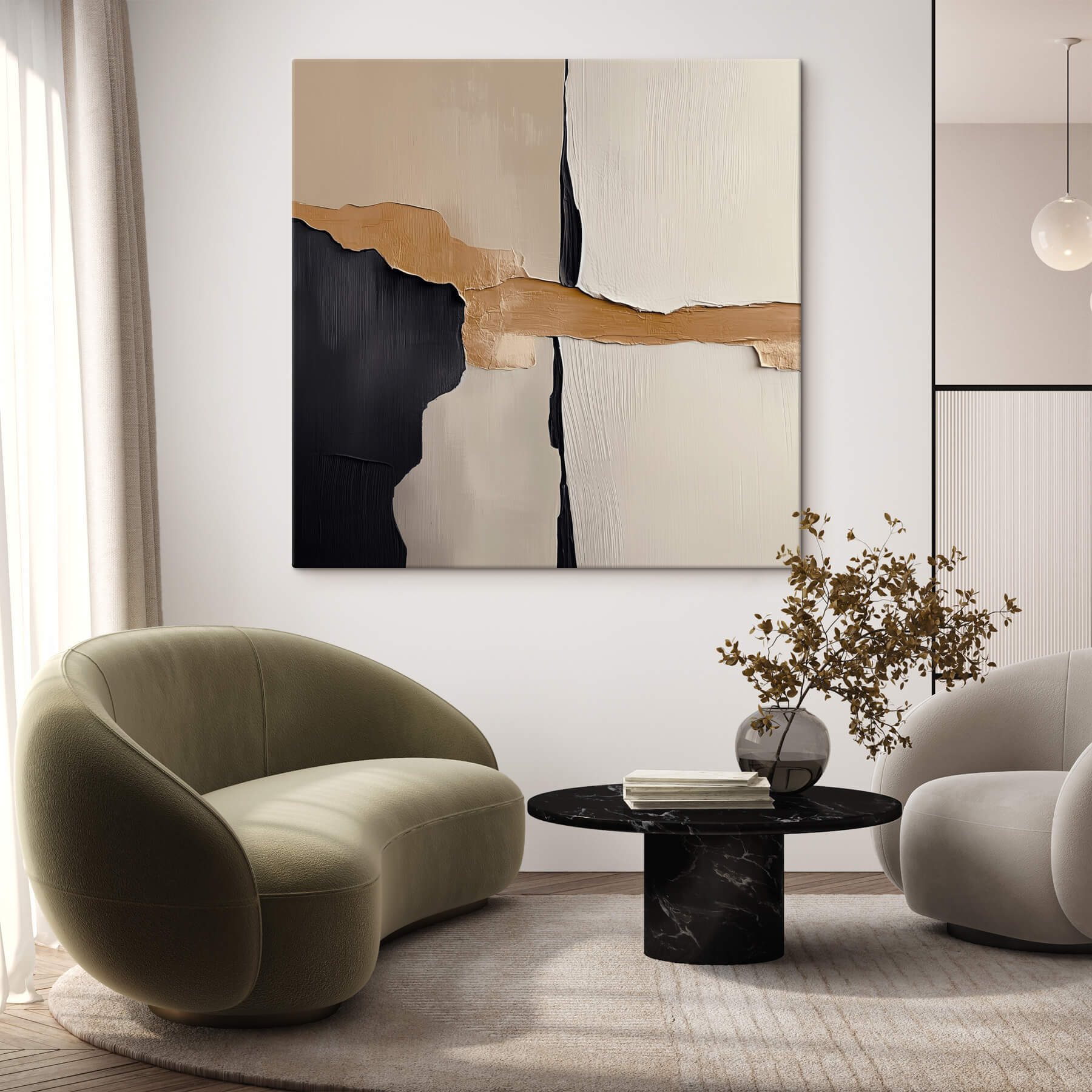 Transformați-vă spațiul cu această imprimare uimitoare pe pânză, “Tablouri Black and White Wall with a Brown Strip”. Este ca o mică felie de magie a artei moderne care șoptește sofisticare, rămânând în același timp cool fără efort. Negrul îndrăzneț și albul moale sunt întrerupte jucăuș de o fâșie maro caldă, adăugând un strop de personalitate. Imaginați-vă-o deasupra canapelei sau într-un colț de lectură confortabil – un fundal perfect pentru acele discuții alimentate cu cafea sau seri liniștite. Această piesă nu doar decorează; invită la povești, stârnind conversații și un zâmbet de fiecare dată când o priviți. Cine ar fi crezut că arta poate fi ca o îmbrățișare caldă?