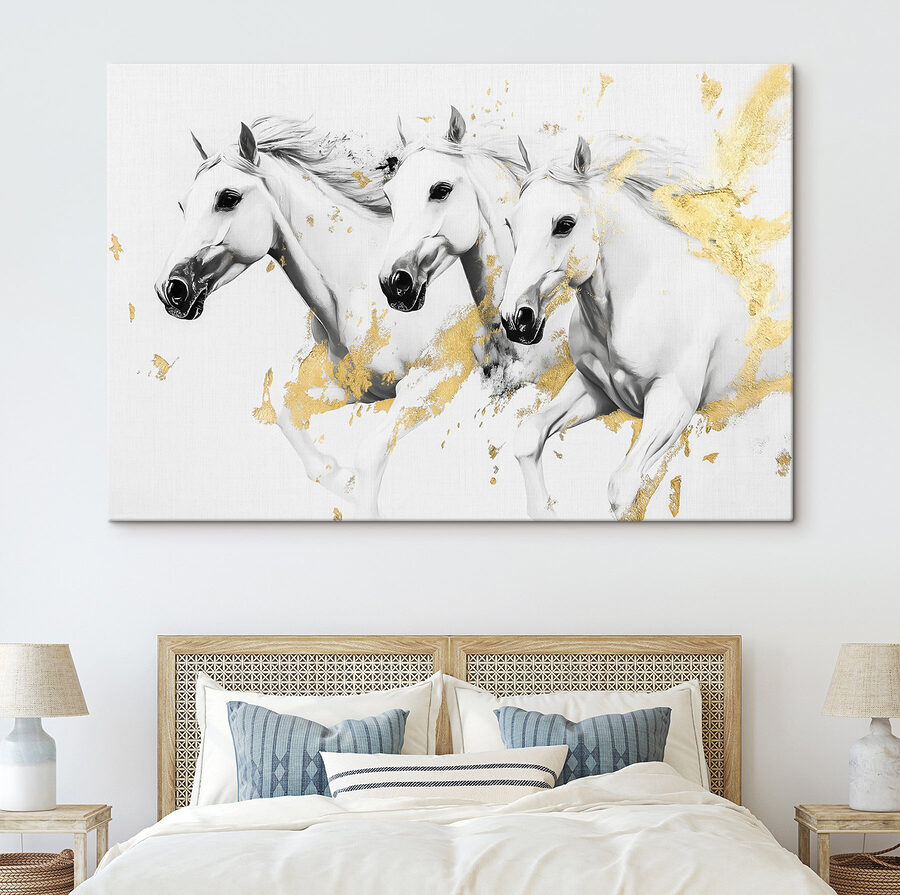 Aduceți o notă de eleganță sălbatică în orice cameră cu această imprimare pe pânză uimitoare, care prezintă un grup de cai albi în plin galop. Este ca și cum ai avea propria ta aventură în vestul sălbatic chiar pe perete! Imaginați-vă energia pe care o emană aceste creaturi grațioase, manelele lor curgătoare fiind perfect surprinse în mijlocul cursei. Această operă de artă nu doar decorează, ci invită la povești și vise cu ochii deschiși. Perfectă pentru camera de zi, pentru birou sau pentru un loc confortabil de citit – oaspeții s-ar putea simți inspirați să încalece șaua și să călărească în propria lor imaginație! Fie că sunteți un iubitor de cai sau doar cineva care apreciază frumusețea naturii, această piesă va stârni cu siguranță bucurie și conversație. Așteptați să apară complimentele!
