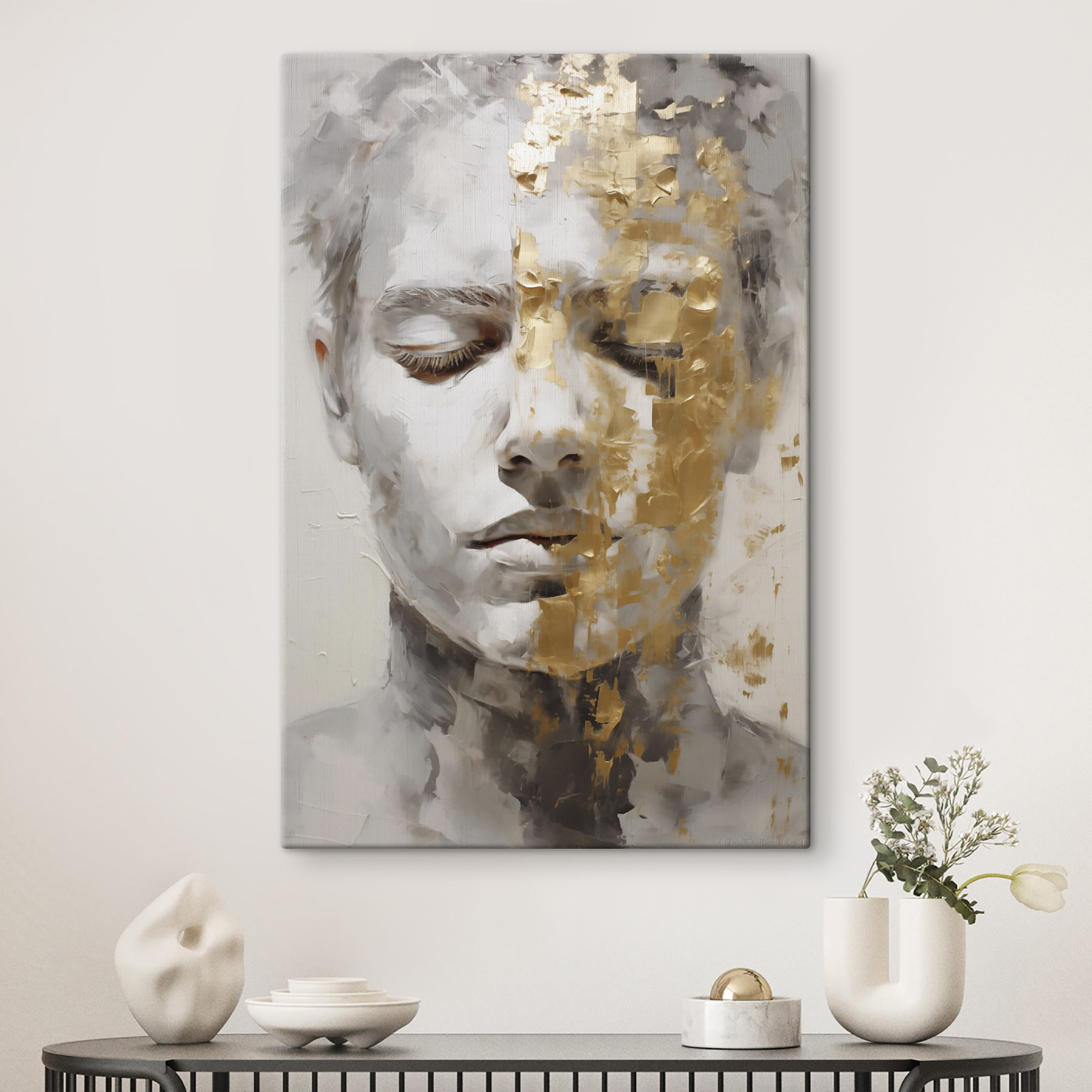 Imaginați-vă că intrați într-o cameră și simțiți instantaneu cum vă cuprinde un val de calm. Această piesă uimitoare, “Transcendent Beauty in Muted Tones”, face exact asta. Paleta subtilă îmbină nuanțe suave care par să fredoneze în liniște, învăluind spațiul în căldură. Este ca și cum pictura ar purta o conversație secretă cu pereții dvs., invitându-vă la gânduri profunde și la visări cu ochii deschiși.