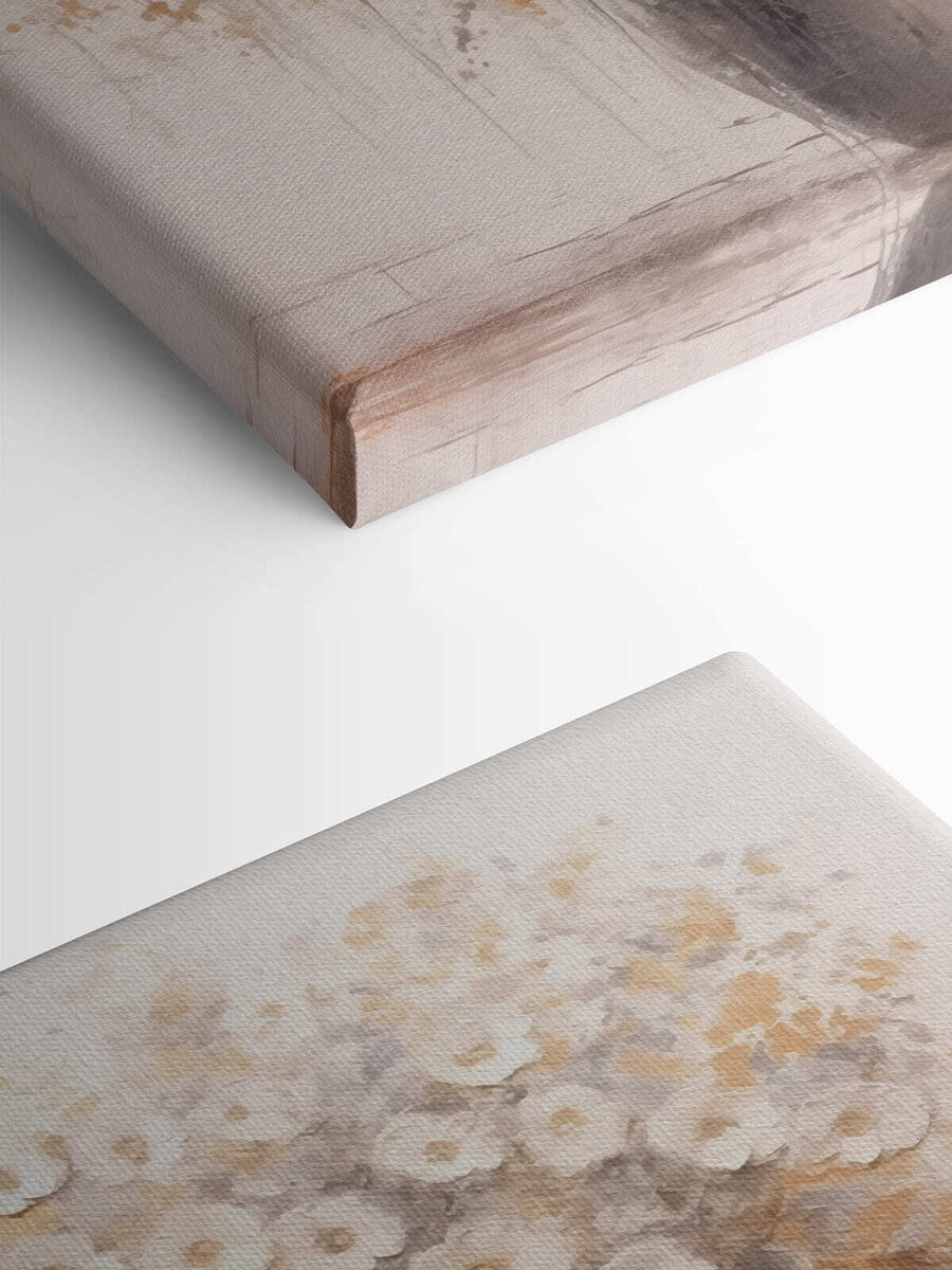 Înveseliți orice cameră cu această imprimare fermecătoare pe pânză a florilor într-o vază. Imaginați-vă că intrați și sunteți întâmpinați de aceste flori delicate – ca o petrecere în grădină chiar în camera dvs. de zi. Albul moale și tonurile blânde de pământ creează o atmosferă senină, perfectă pentru colțuri confortabile sau spații mai pline de viață. Cineva și-ar putea turna o ceașcă de ceai, s-ar așeza pe canapea și ar privi această operă de artă, pierdut în gânduri sau amintiri. Este genul de piesă care invită la visare cu ochii deschiși, făcând ca fiecare privire să se simtă ca o mini retragere. Un plus încântător pentru orice colecție, care va stârni cu siguranță bucurie.