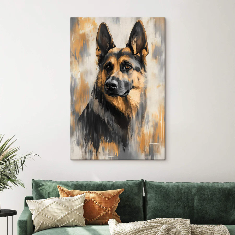Îmbunătățiți-vă spațiul cu această uimitoare imprimare pe pânză a unui câine care este gata să devină vedeta peretelui dvs.! Cu privirea sa expresivă și culorile vibrante, această operă de artă nu este doar o decorațiune, ci este ca și cum ați avea un companion blănos care veghează asupra camerei. Imaginați-vă seri confortabile cu o carte bună, iar deasupra dvs. se află acest cățeluș cu privire loială, care adaugă căldură și farmec. Este perfect pentru iubitorii de animale care apreciază puțină artă. În plus, ar putea chiar inspira conversații – cine nu ar vrea să discute despre un cățeluș atât de captivant? Acest tablou aduce o bucată de bucurie în orice colț!