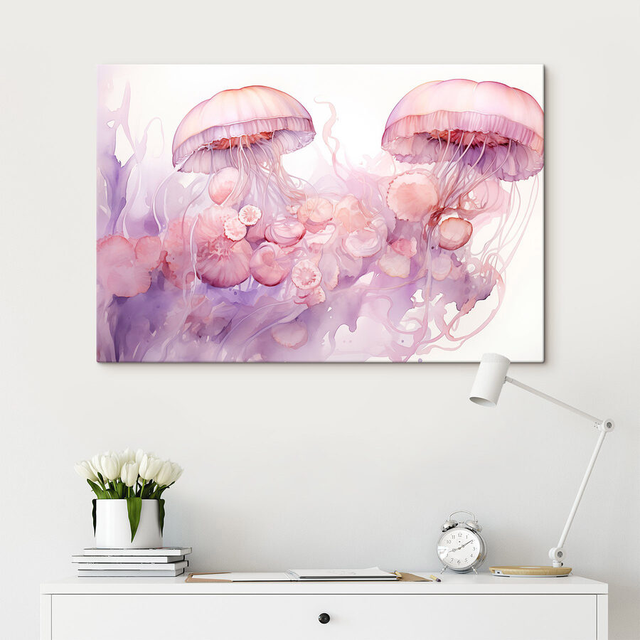 Scufundați-vă într-o lume subacvatică de vis cu această imprimare uimitoare pe pânză care prezintă un grup grațios de meduze. Culorile pastelate blânde dansează împreună, creând o vibrație liniștită care se simte ca o briză blândă a oceanului. Imaginați-vă că agățați această piesă într-un colț confortabil sau deasupra canapelei – cu siguranță va stârni discuții! Prietenii s-ar putea surprinde uitându-se, pierduți în gânduri, în timp ce își imaginează legănarea pașnică a meduzelor plutind în derivă prin mare. Această operă de artă nu este doar decor; este o evadare, un strop de seninătate care va înveseli orice spațiu. Perfect pentru cei care apreciază arta neobișnuitului!