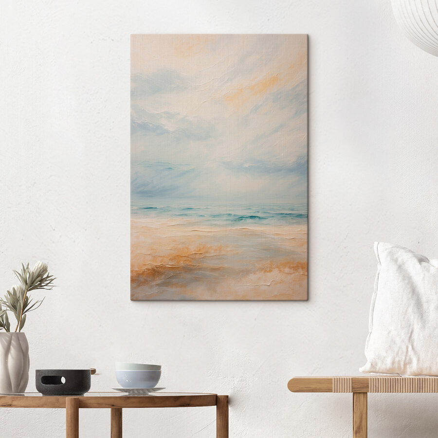 Imaginați-vă că vă treziți în fața nuanțelor delicate ale unei plaje liniștite. Această imprimare pe pânză surprinde momentul perfect în care soarele străbate norii, scăldând nisipul și valurile în culori de vis. Este ca o mică bucată de paradis chiar acolo, pe peretele dvs. Fiecare privire vă poate transporta la malul mării, chiar dacă sunteți blocat într-un zgârie-nori din oraș. Imaginează-ți că savurezi o ceașcă de cafea, simțind briza oceanului pe piele, în timp ce această operă de artă serenă îți învăluie spațiul într-o atmosferă calmă. Este un subiect perfect de conversație – sau poate doar un pretext bun pentru a visa cu ochii deschiși! Așadar, fie că decorezi un colț confortabil sau îți înfrumusețezi sufrageria, această piesă aduce frumusețea naturii în interior, făcând ca fiecare zi să pară o zi la plajă.