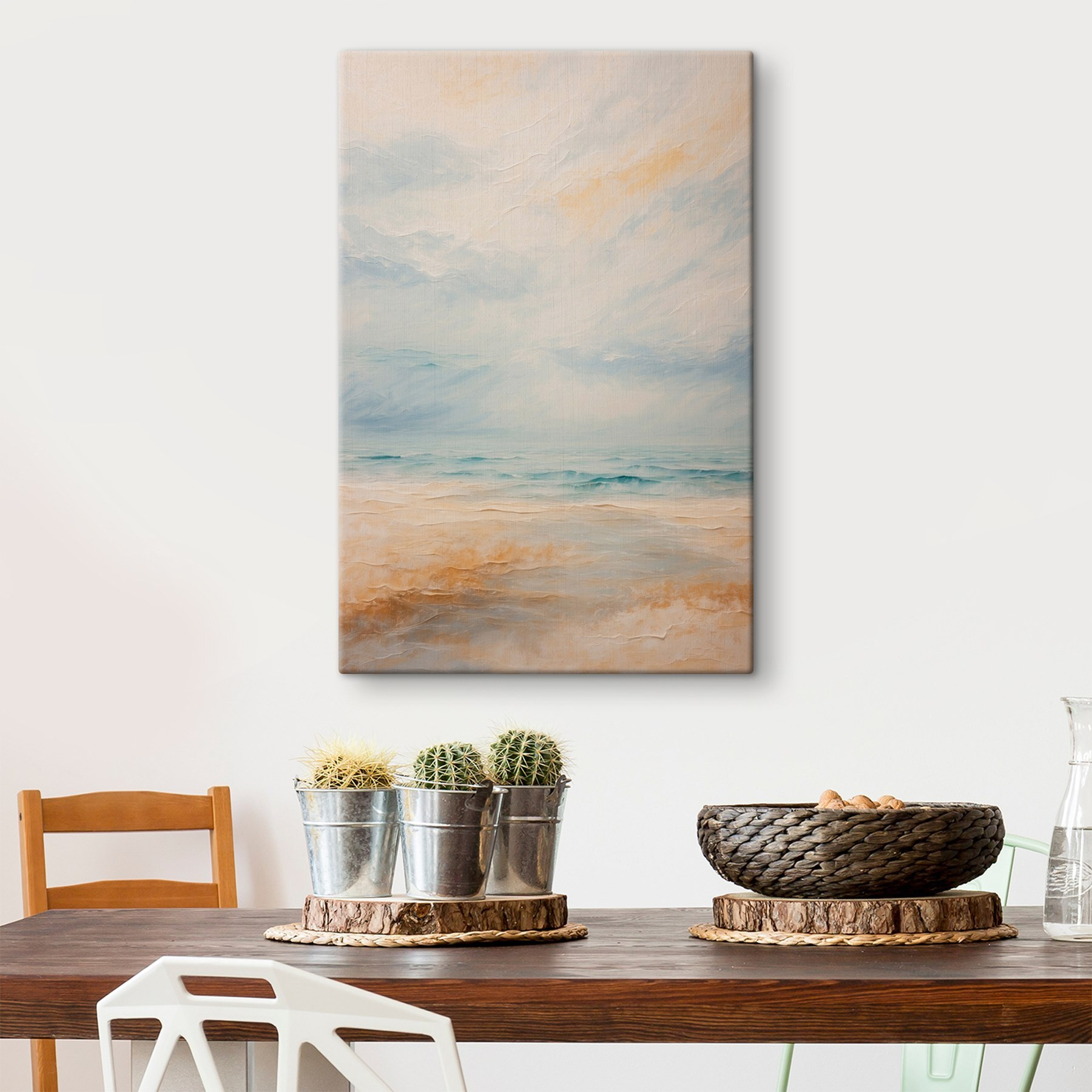 Imaginați-vă că vă treziți în fața nuanțelor delicate ale unei plaje liniștite. Această imprimare pe pânză surprinde momentul perfect în care soarele străbate norii, scăldând nisipul și valurile în culori de vis. Este ca o mică bucată de paradis chiar acolo, pe peretele dvs. Fiecare privire vă poate transporta la malul mării, chiar dacă sunteți blocat într-un zgârie-nori din oraș. Imaginează-ți că savurezi o ceașcă de cafea, simțind briza oceanului pe piele, în timp ce această operă de artă serenă îți învăluie spațiul într-o atmosferă calmă. Este un subiect perfect de conversație – sau poate doar un pretext bun pentru a visa cu ochii deschiși! Așadar, fie că decorezi un colț confortabil sau îți înfrumusețezi sufrageria, această piesă aduce frumusețea naturii în interior, făcând ca fiecare zi să pară o zi la plajă.