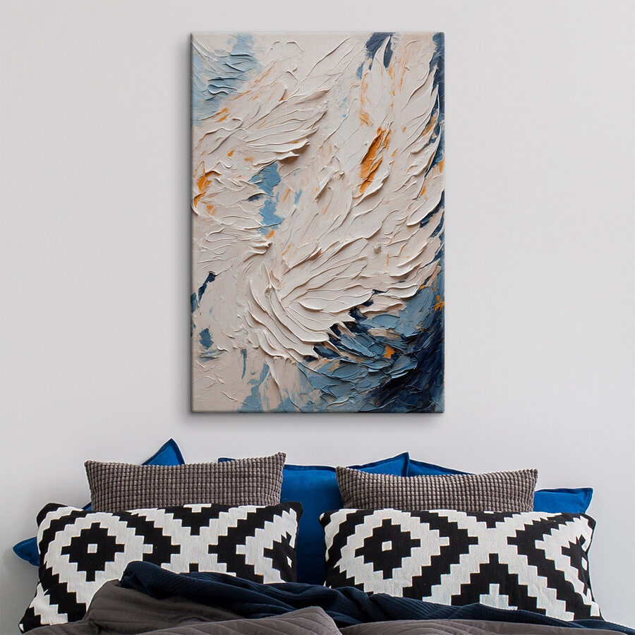 Imaginați-vă că vă treziți la o pânză care șoptește vibrații blânde. “Ethereal Wings in Soft Hues” dansează cu culori aerisite care se simt ca o briză ușoară într-o după-amiază caldă. Vârtejurile și tușele creează o impresie liniștitoare, gâdilând imaginația și invitând la visare cu ochii deschiși. Imaginați-vă această frumusețe într-un colț de lectură confortabil sau deasupra unui pat senin. Este ca o îmbrățișare moale pentru pereți, care ridică spiritul fără să încerce prea mult. Prietenii se vor apleca mai aproape, cu ochii mari, întrebându-se dacă au dat peste o galerie sau dacă au găsit decorul perfect pentru micile momente ale vieții. Cald, înălțător și atât de primitor!
