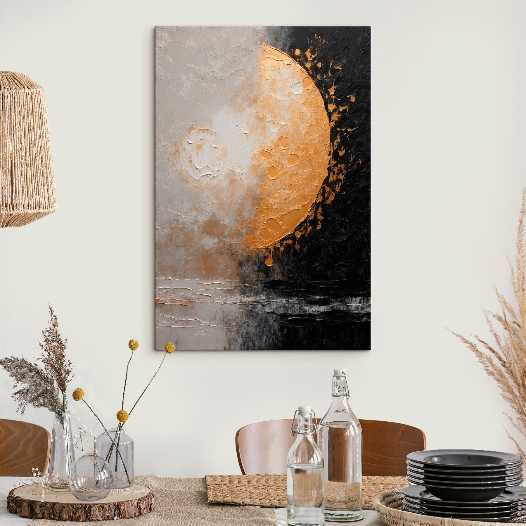 Transformați-vă spațiul cu această imprimare uimitoare pe pânză a unei luni, unde arta întâlnește universul. Contrastul de lumină și întuneric creează un echilibru captivant, atrăgând privirea și stârnind curiozitatea. Imaginați-vă că vă relaxați cu o ceașcă de ceai, absorbit de gânduri, în timp ce această piesă aduce o notă de magie cosmică pe pereții dvs. Este ca o mică felie de cer nocturn atârnată la îndemână, perfectă pentru visătorii cu ochii deschiși și privitorii de stele. Lăsați această artă inspirată de lumina lunii să fie un subiect de conversație sau pur și simplu un fundal liniștitor pentru viața de zi cu zi. Îmbrățișați minunea!