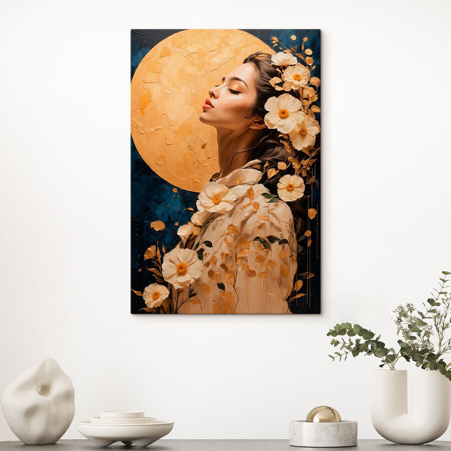 Aduceți un plus de farmec spațiului dvs. cu „Tablou pe pânză Femeie cu flori în jurul părului”. Această lucrare este ca o șoaptă blândă a naturii, combinând frumusețea florilor delicate cu o siluetă de vis. Imaginați-vă că intrați într-o cameră și sunteți întâmpinați de această operă de artă – cu siguranță va fi un subiect de conversație. Nuvelele delicate și florile ornamentate evocă căldură, trezind gânduri despre după-amieze însorite și zile fără griji. Perfectă pentru a înveseli un colț confortabil sau colțul dvs. preferat de lectură, este o operă de artă care pare a fi un prieten, mereu primitoare și niciodată critică. Exact genul de atmosferă care vă ridică moralul!