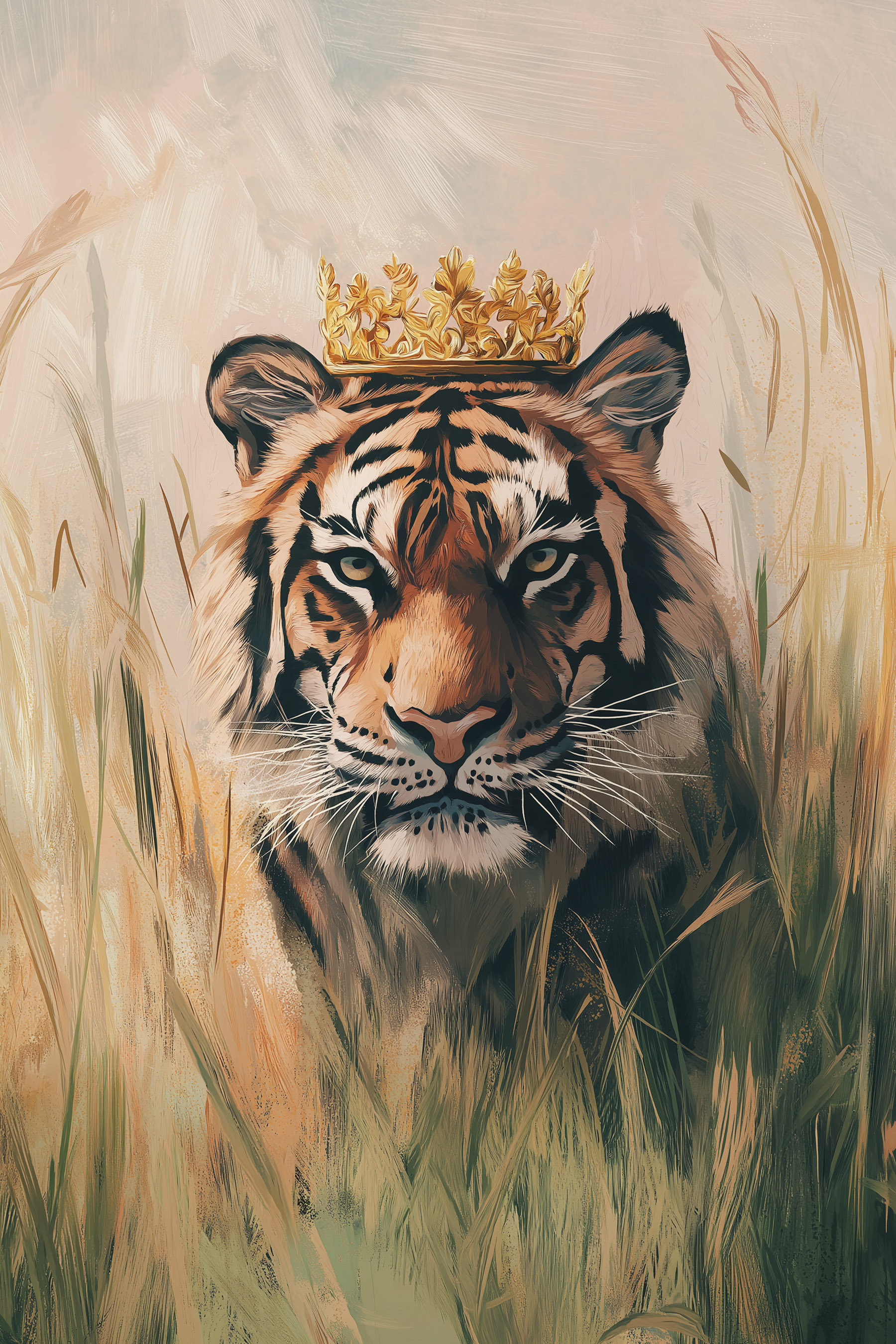 Pășiți într-o lume în care eleganța se întâlnește cu sălbăticia cu „Canvas Prints Tiger with a Crown”. Această piesă impresionantă prezintă un tigru maiestuos purtând o coroană, emanând o atmosferă regală care este în egală măsură feroce și fabuloasă. Imaginați-vă această frumusețe atârnând în sufrageria dvs., stârnind fără efort conversații. Este ca și cum ați avea o mică regină (sau rege) a junglei care veghează asupra spațiului dvs., amintindu-le tuturor că forța și grația pot coexista. În plus, nuanțele calde ale fundalului conferă o atmosferă confortabilă, perfectă pentru a vă cuibări cu o carte sau pentru a savura o ceașcă de ceai. Fie că doriți să faceți o declarație îndrăzneață sau doar să adăugați un plus de personalitate, această imprimare pe pânză aduce un strop de aventură în cotidian. Așadar, nu ezitați, lăsați tigrul să domnească pe peretele dvs. – la urma urmei, cine nu și-ar dori un strop de regalitate în casa sa?
