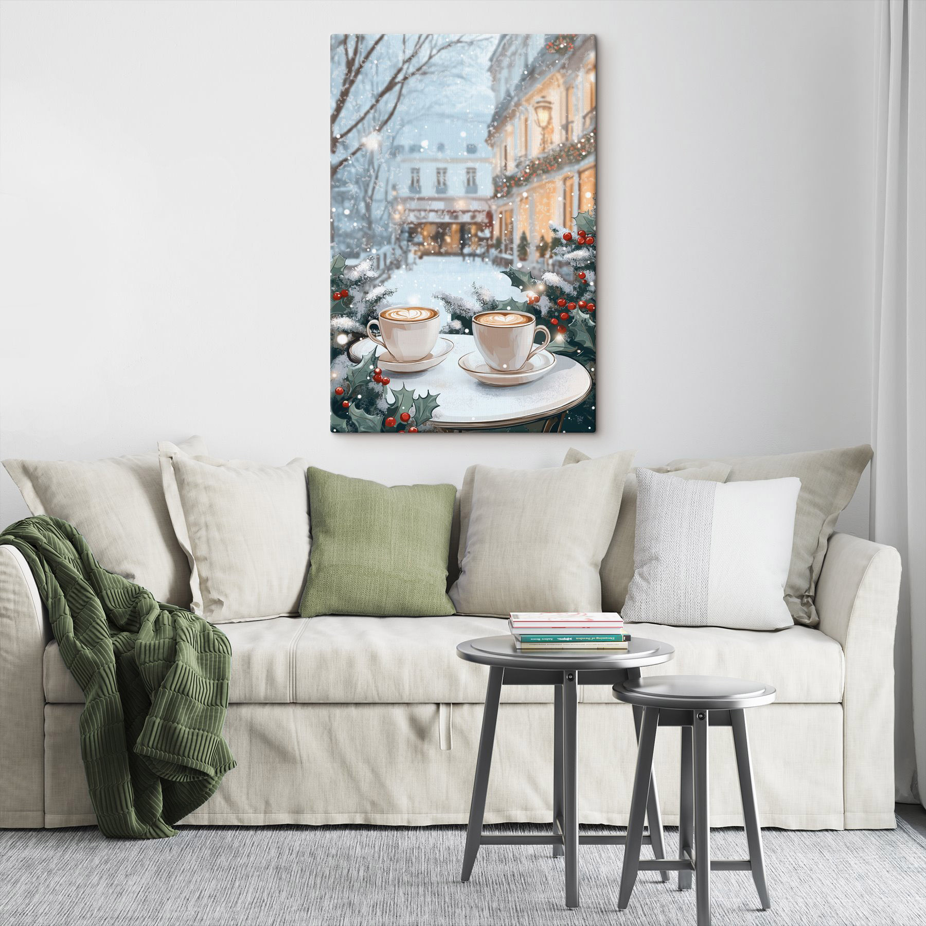 Warm up any room with this charming canvas print featuring two cups of coffee cozying up on a table, framed by a snowy street. It’s like a scene straight out of a holiday movie, inviting you to imagine the muffled sounds of snow falling outside and the delicious aroma of fresh coffee wafting in the air. Just picture snuggling up with a favorite blanket, savoring that first sip while the world outside sparkles. Perfect for anyone who loves a touch of warmth in their decor, this print captures a moment of simple joy, making it a delightful addition to any home. It’s art that’s not just pleasing to the eye, but also tugs at the heartstrings. Perfect for coffee lovers or anyone in need of a wintery escape.